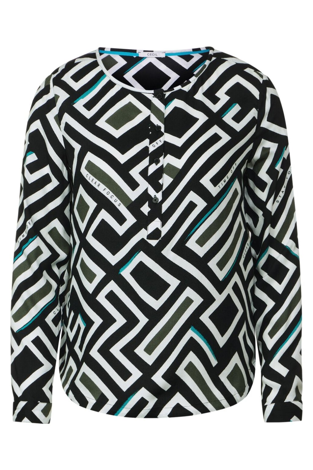 Táto blúzka CECIL s potlačou zaujme uzatvárateľným dlhým rukávom, okrúhlym výstrihom s gombíkovou légou a okrúhlym spodným lemom. Moderný a pritom nadčasový geometrický vzor dodáva tejto dámskej blúzke svieži vzhľad. Je vyrobená z mäkkej viskózy, pohodlne sa nosí a je ideálna pre ženy, ktoré sa rady obliekajú módne, ale napriek tomu si cení pohodlie.