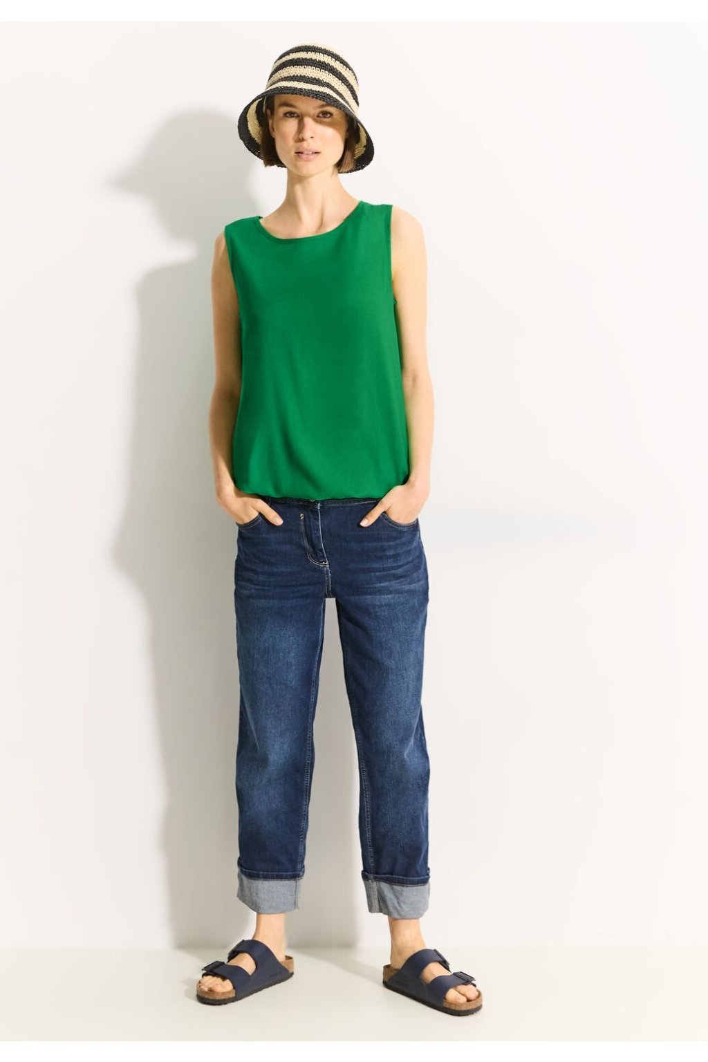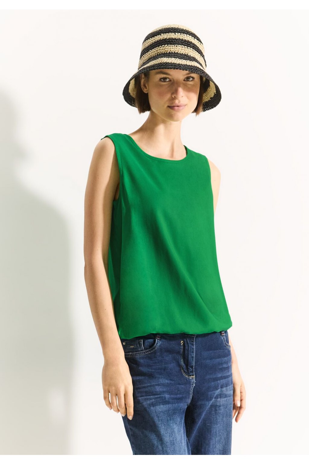 Dámsky blúzkový top bez rukávov CECIL je všestranným kúskom, ktorý je ideálny pre teplé dni. S jednoduchým okrúhlym výstrihom a praktickým elastickým pásom ponúka pohodlie a štýl zároveň. Vzdušný rozparok v zadnej časti dodáva jednofarebnému topu elegantný nádych, zatiaľ čo mäkká kvalita viskózy zaisťuje pohodlné nosenie.