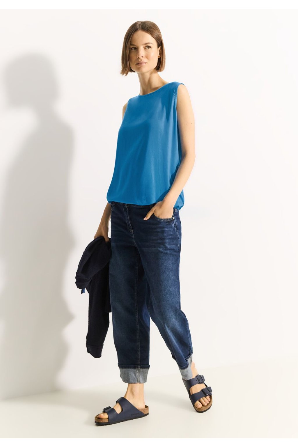 Dámsky blúzkový top bez rukávov CECIL je všestranným kúskom, ktorý je ideálny pre teplé dni. S jednoduchým okrúhlym výstrihom a praktickým elastickým pásom ponúka pohodlie a štýl zároveň. Vzdušný rozparok v zadnej časti dodáva jednofarebnému topu elegantný nádych, zatiaľ čo mäkká kvalita viskózy zaisťuje pohodlné nosenie.