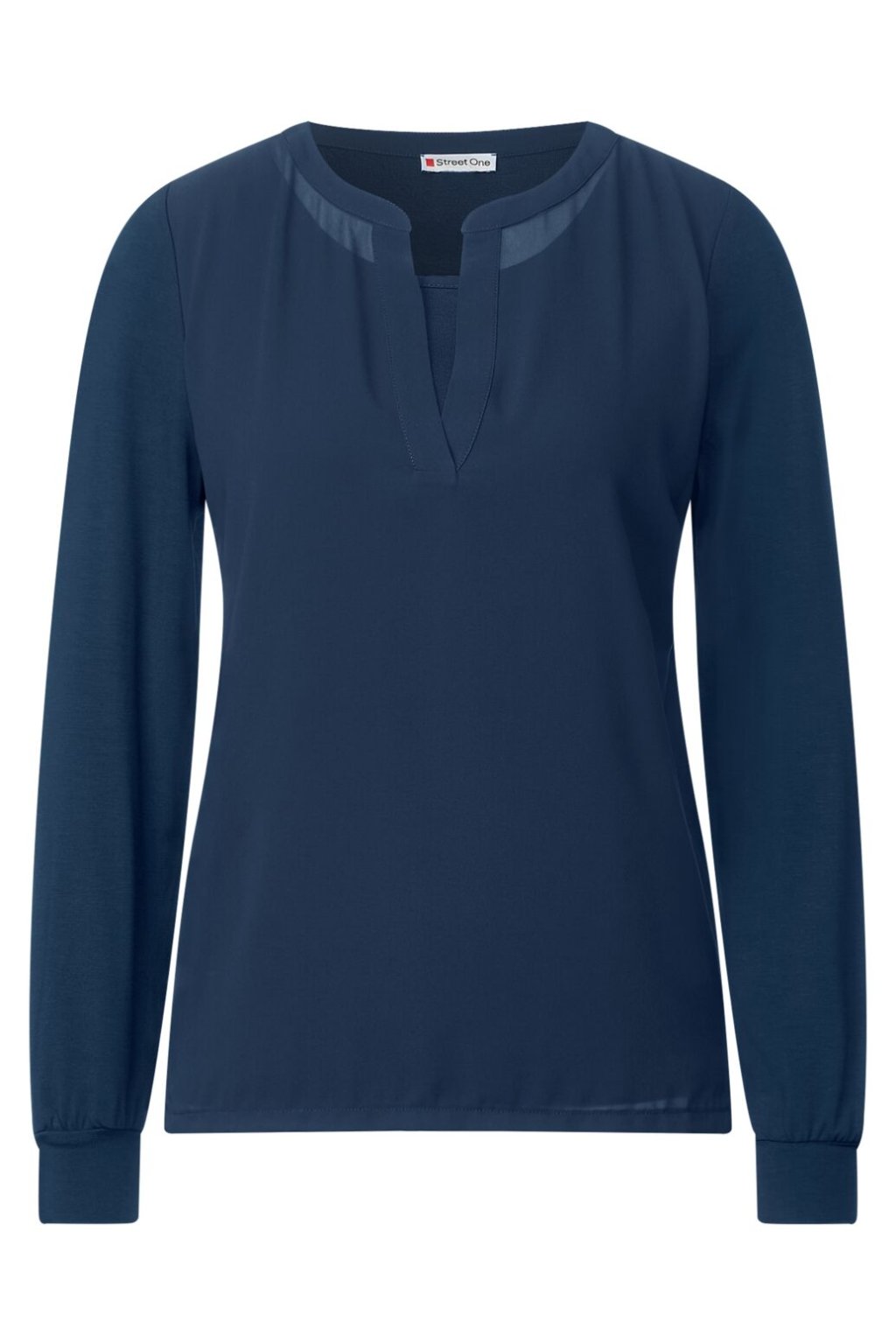 Táto dámska šifónová blúzka s dlhým rukávom od Street One má rozparok, ozdobný výstrih a manžety na pažiach, čo jej dodáva ženský nádych. Vďaka svojmu elegantnému vzhľadu sa skvele hodí na slávnostné príležitosti alebo ak chcete vyzerať obzvlášť šik. Noste ju k nohaviciam alebo sukni, aby ste svojmu vzhľadu dodali eleganciu a štýl.