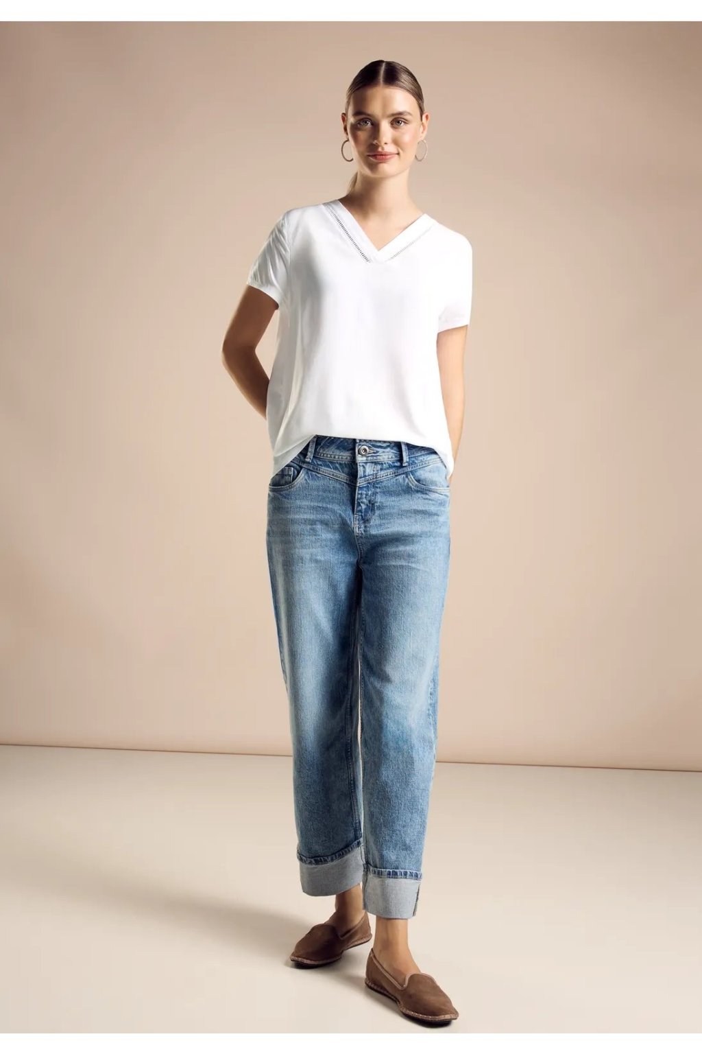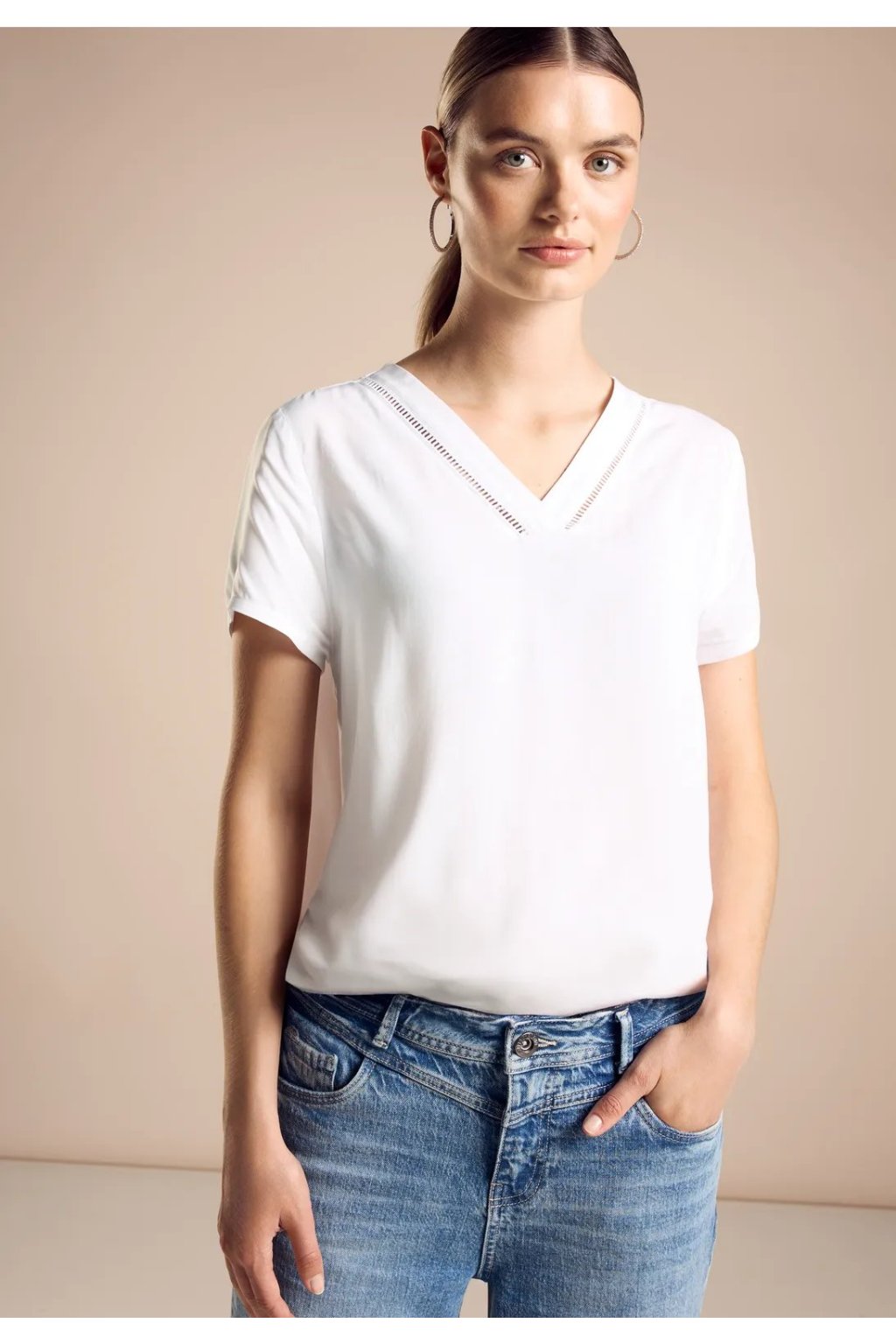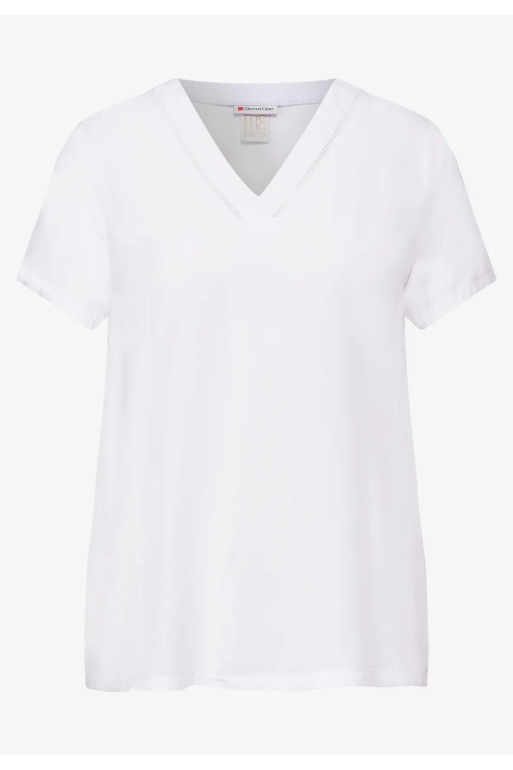 Dámska blúzka Street One je ideálna pre teplé dni. Výstrih do V s výšivkou jej dodáva ženský nádych a nádych elegancie. Je vyrobená z mäkkej viskózy, pohodlne sa nosí a je všestranným kúskom oblečenia do letného šatníka.