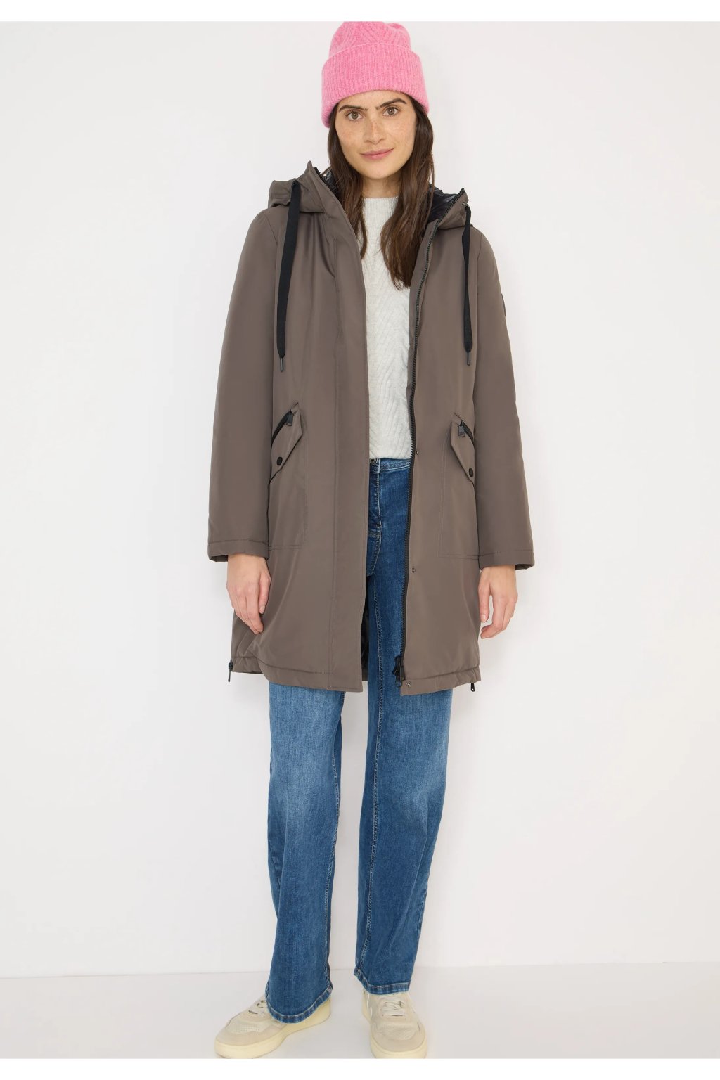 Táto športová dámska parka od CECIL zaujme funkčnými detailmi a ležérnym vzhľadom. Vďaka vnútornej sťahovacej šnúrke je možné individuálne nastaviť pás – pre ženskú siluetu aj napriek pohodlnému strihu a hrejivému pohodliu. Ideálne pre chladné obdobie.