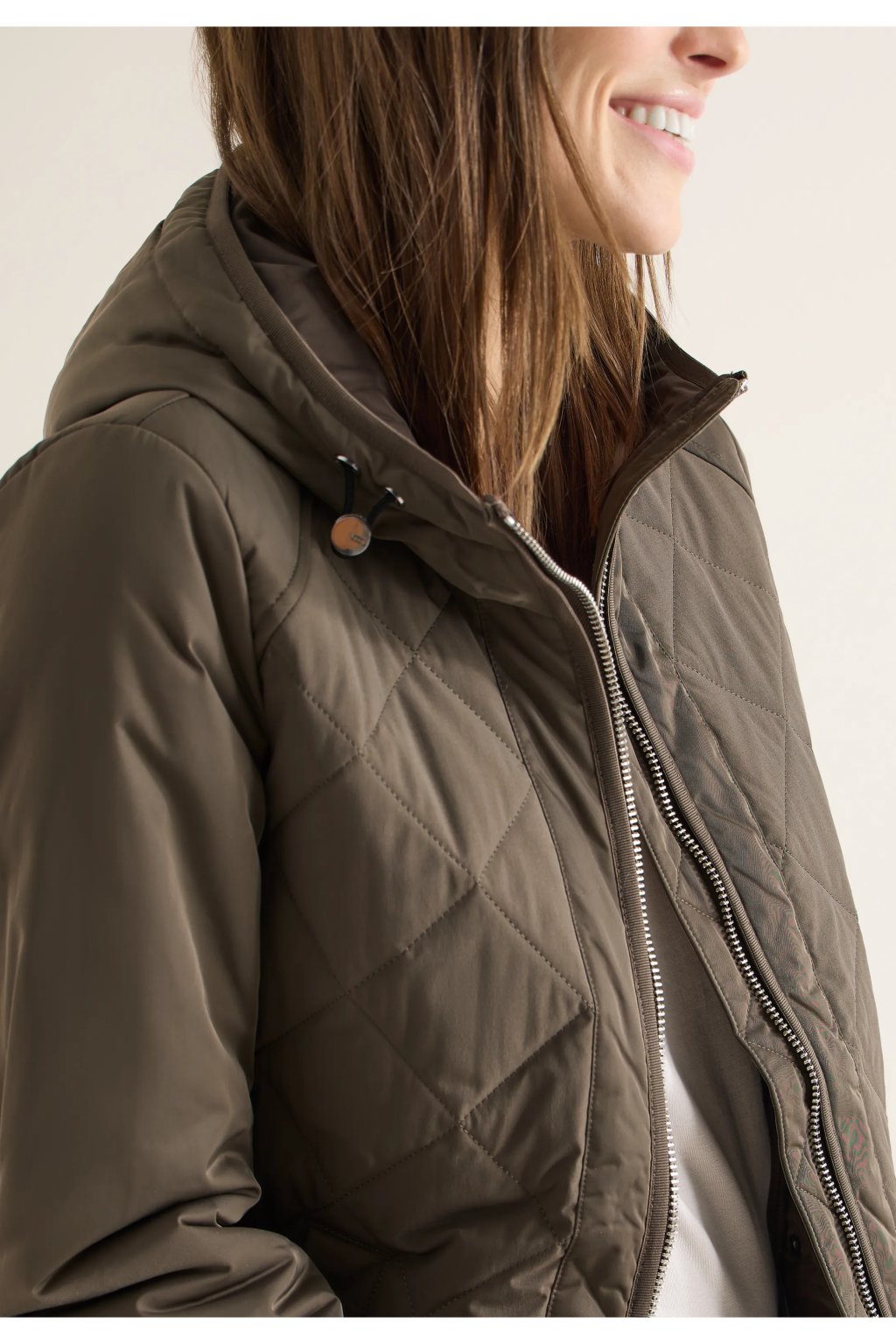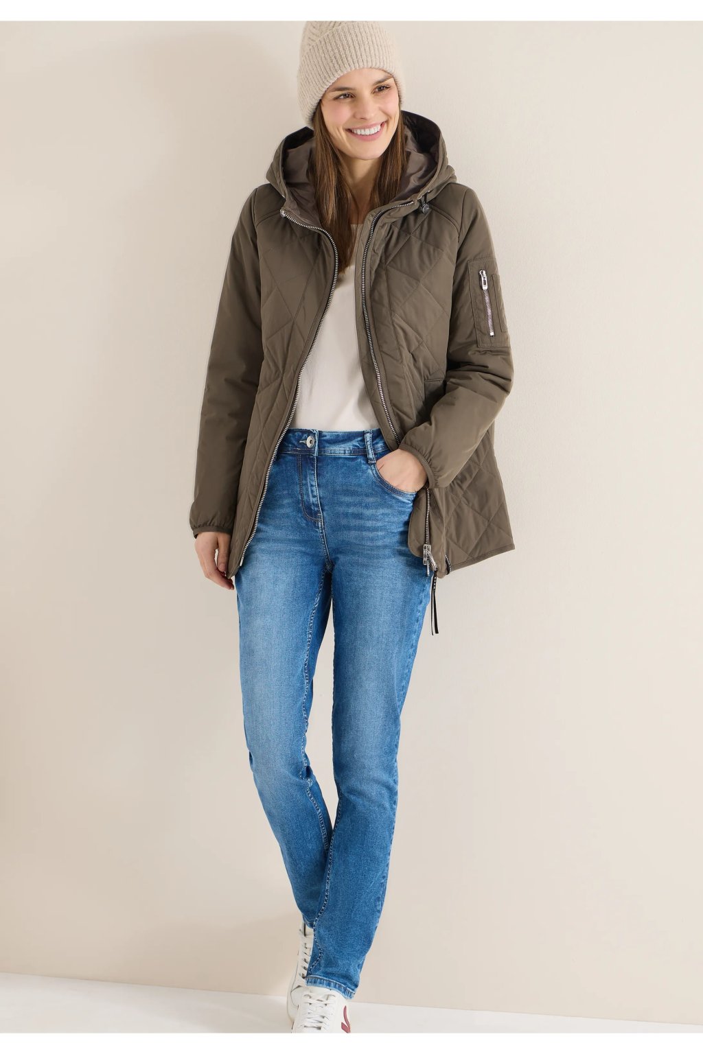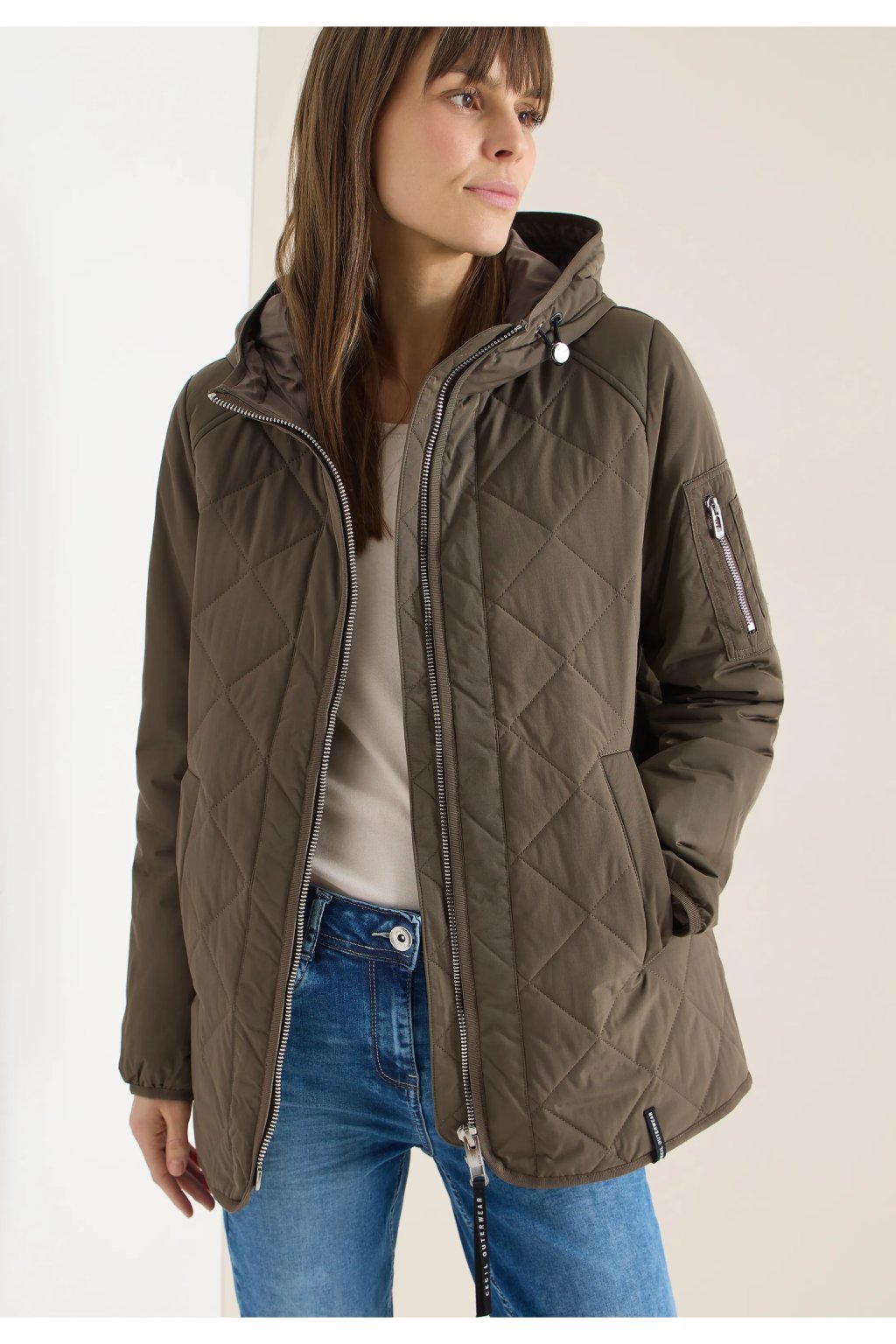Táto prešívaná bunda s kapucňou a obojsmerným zipsom od značky CECIL pre ženy vám ponúka príjemné teplo a pohodlie a zároveň si zachováva nekomplikovaný každodenný vzhľad. Kapucňa so sťahovacou šnúrkou, bočné vrecká a vnútorné vrecko zaisťujú perfektnú kombináciu funkčnosti a pohodlia. Zaoblený lem a dlhé rukávy s detailmi na zips dotvárajú dizajn – ideálny pre váš dynamický ležérny štýl.