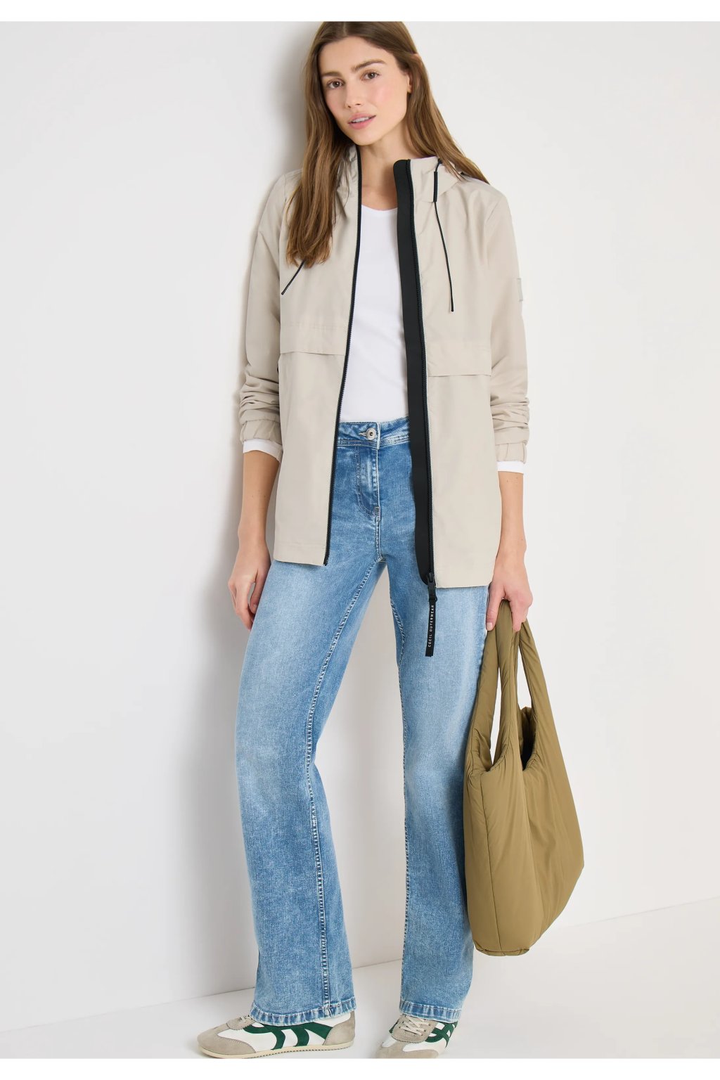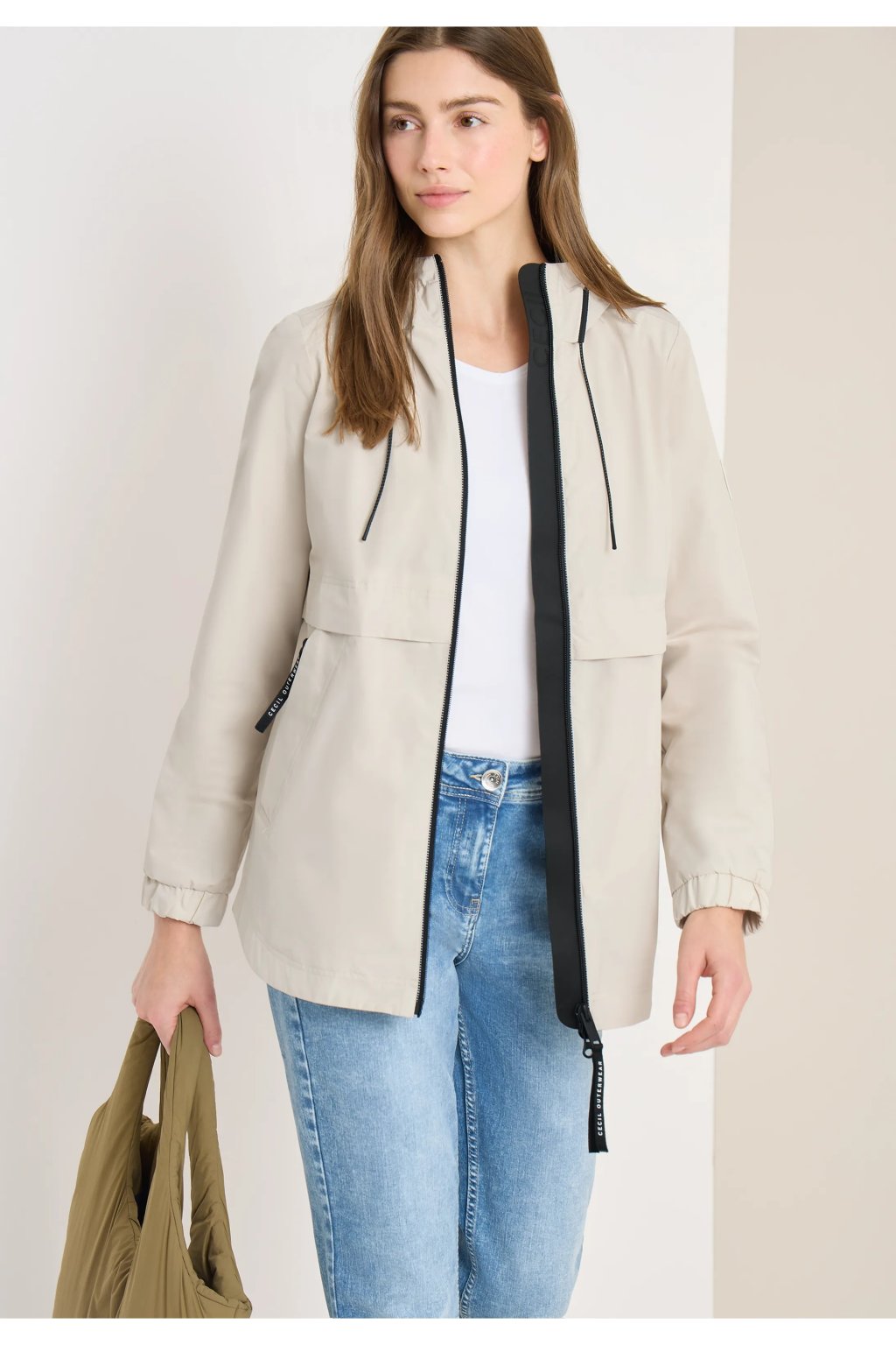 Táto dámska bunda áčkového strihu od značky CECIL vyžaruje športový štýl vďaka kapucni, zapínaniu na zips a elastickým manžetám. Zaoblený lem a voľná silueta zaisťujú pohodlné nosenie – ideálne na každodenné nosenie, keď chcete byť nekomplikovaná av pohodlí.