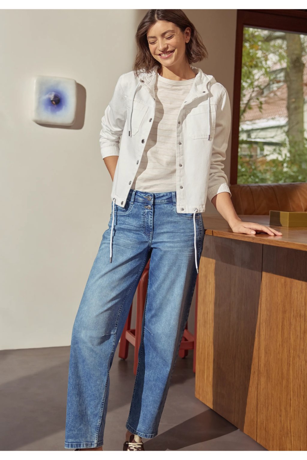 Táto džínsová bunda od značky CECIL pre ženy kombinuje ležérny štýl so športovými prvkami. Zmes lyocelu a bavlny zaisťuje príjemne ľahký pocit. Kapucňa so sťahovacou šnúrkou, zapínanie na gombíky a náprsné vrecká zdôrazňujú uvoľnený vzhľad. Sťahovací lem umožňuje nastaviť strih pre perfektné padnutie.