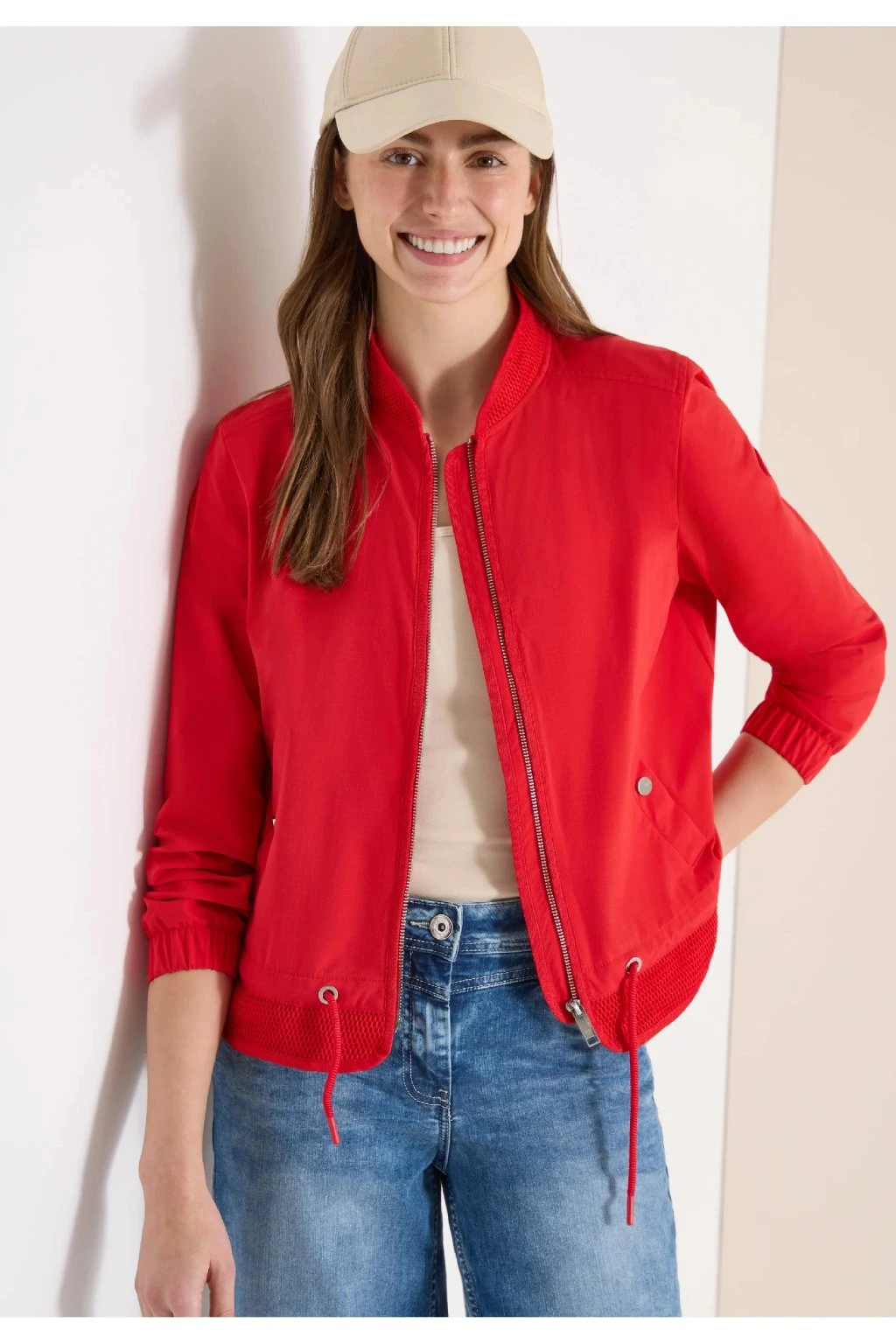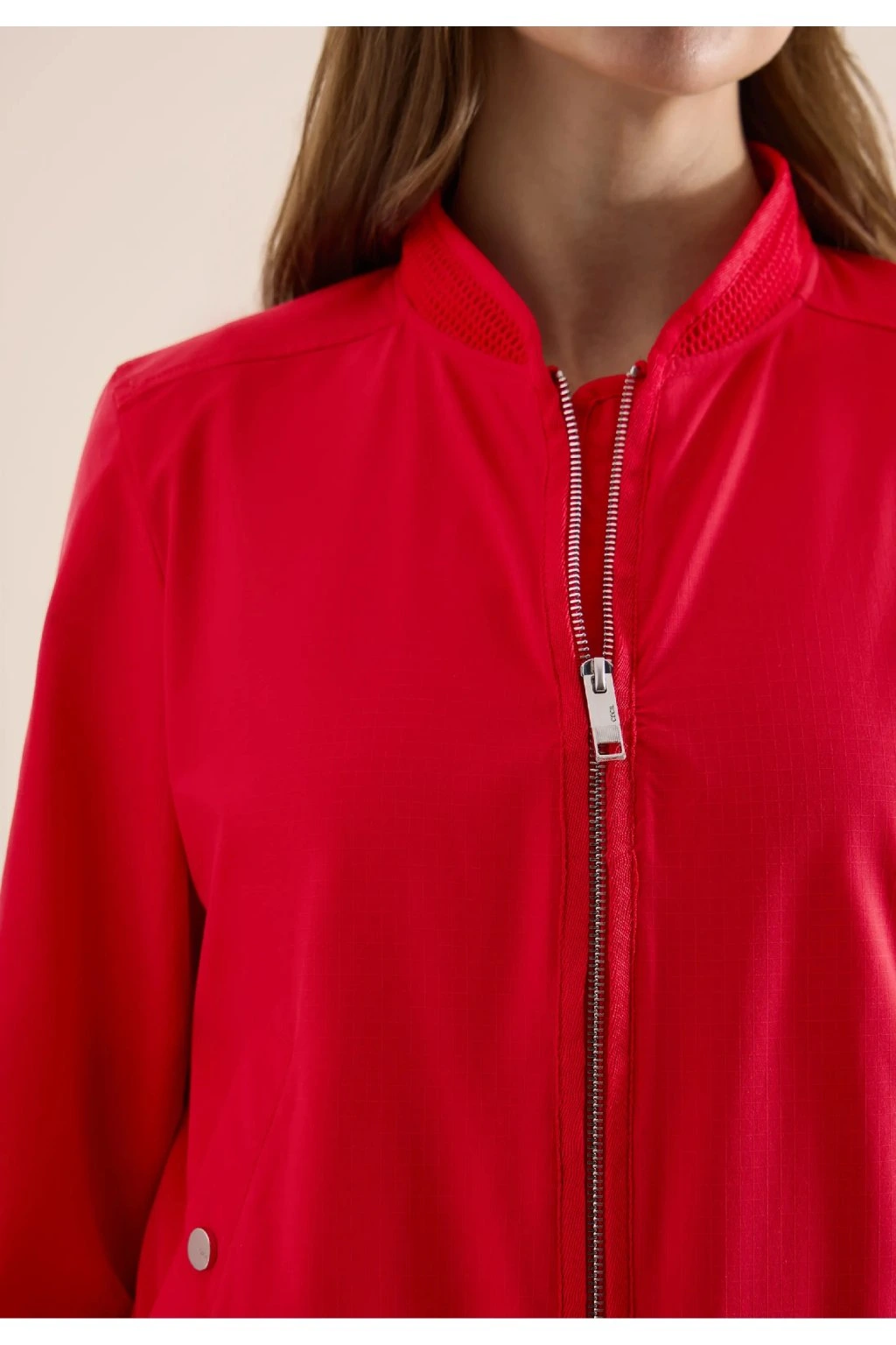 Ľahká dámska bunda v výraznej červenej farbe je ideálny kúsok na jarné a letné dni. Moderný strih so zapínaním na zips a pružnými lemami zaisťuje pohodlie aj skvelé padnutie. Štýlový dizajn ľahko oživí každý outfit a skvele sa kombinuje s džínsami aj športovejšími kúskami - perfektná voľba pre každodenné nosenie.