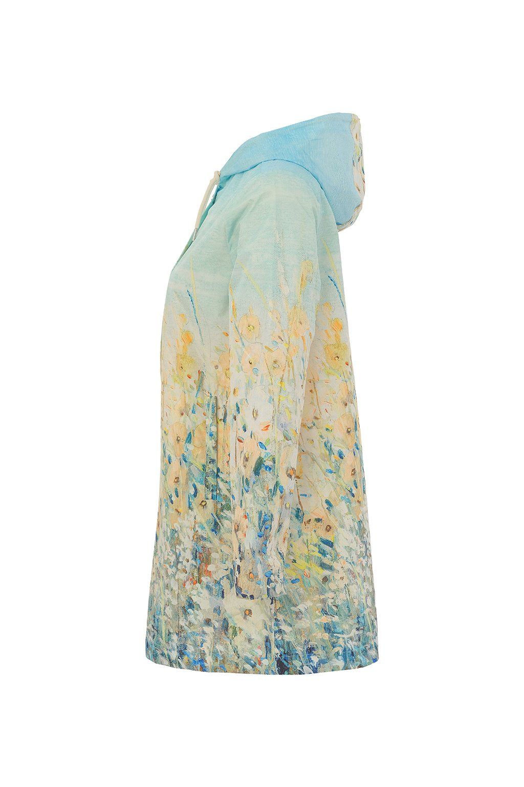 Ľahká dámska bunda s jemnou umeleckou potlačou v pastelových tónoch pôsobí elegantne a sviežo zároveň. Má pohodlný strih, kapucňu so sťahovaním a praktické zapínanie na zips kryté légou, ktoré chráni pred vetrom. Vďaka ľahkému materiálu je ideálny na jarné a jesenné dni a ľahko doplní akýkoľvek outfit. Perfektná voľba pre ženy, ktoré chcú vyzerať štýlovo aj v nepriaznivom počasí.