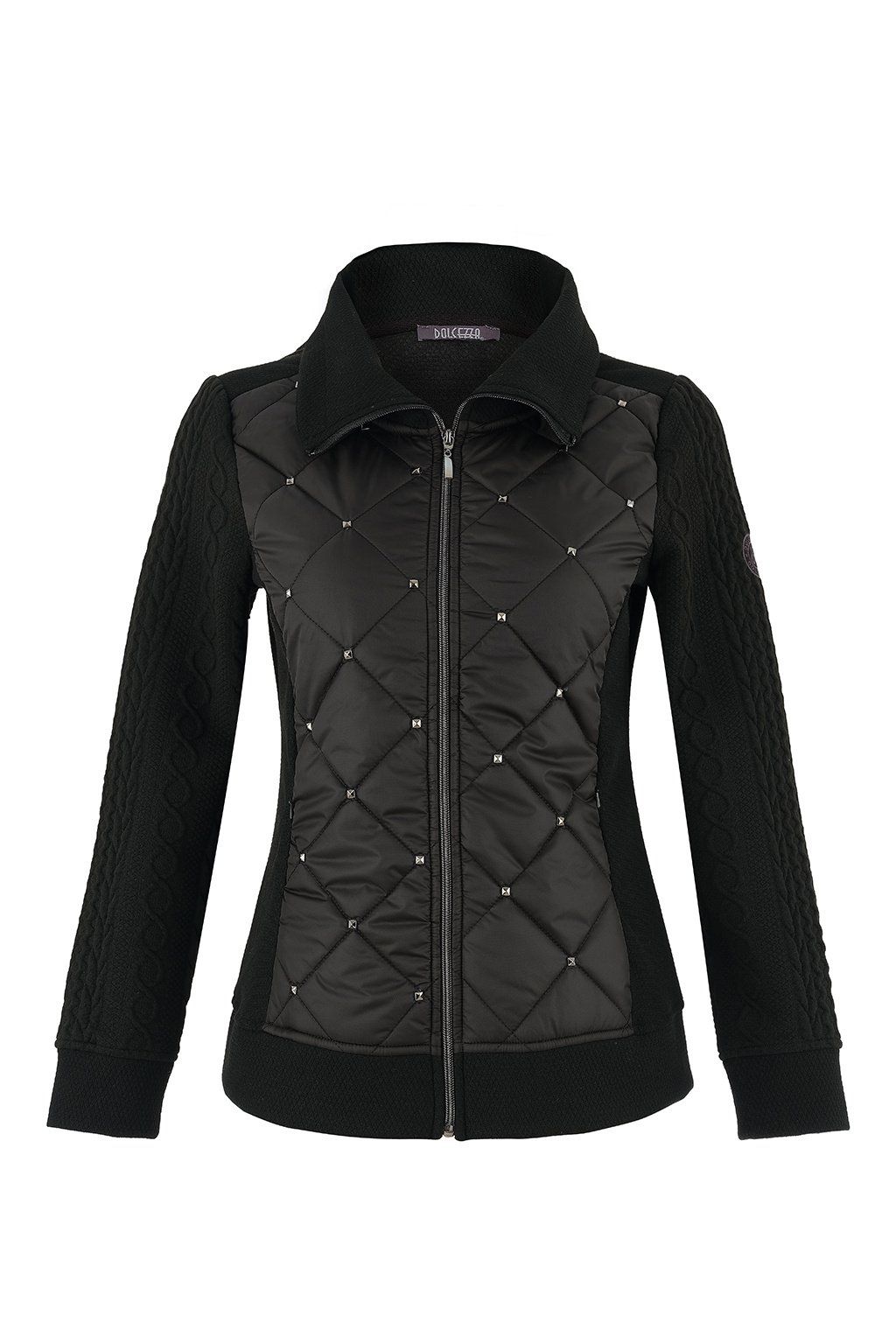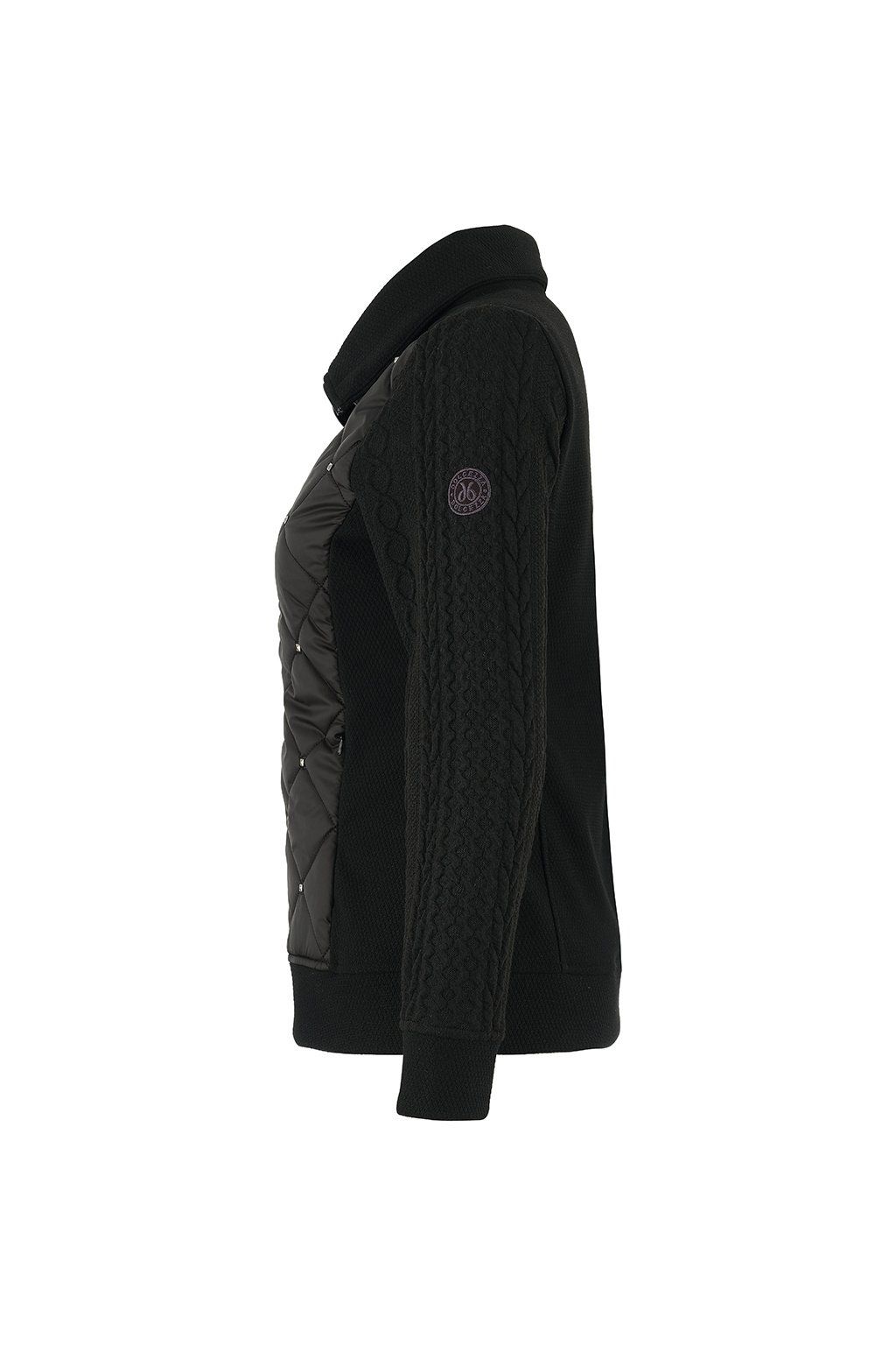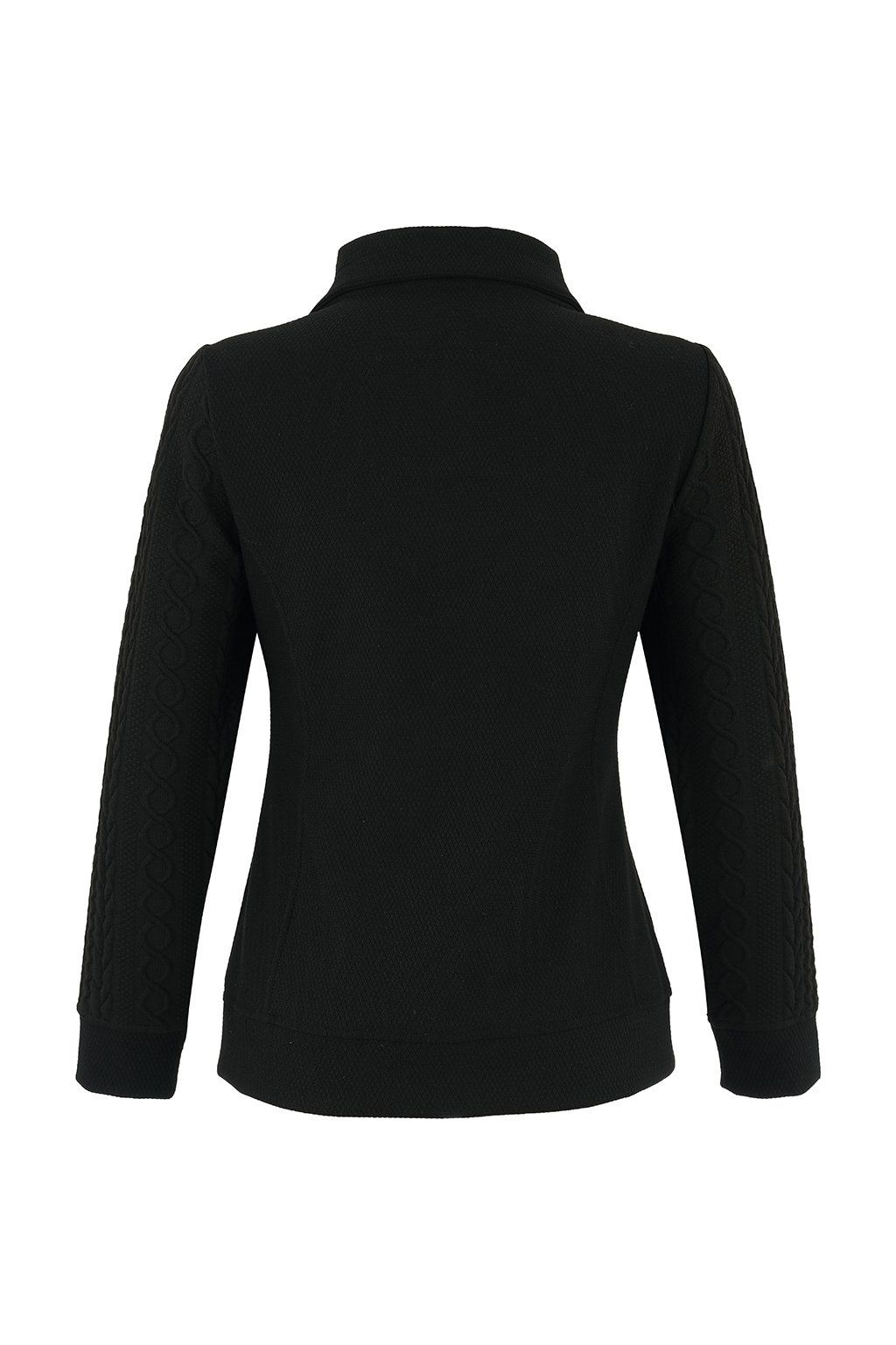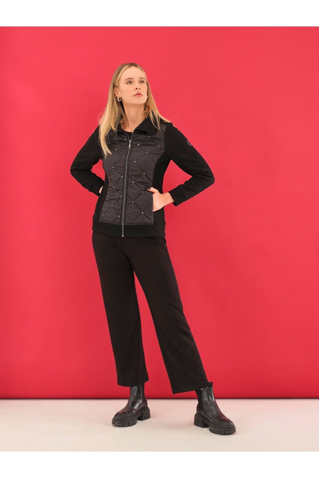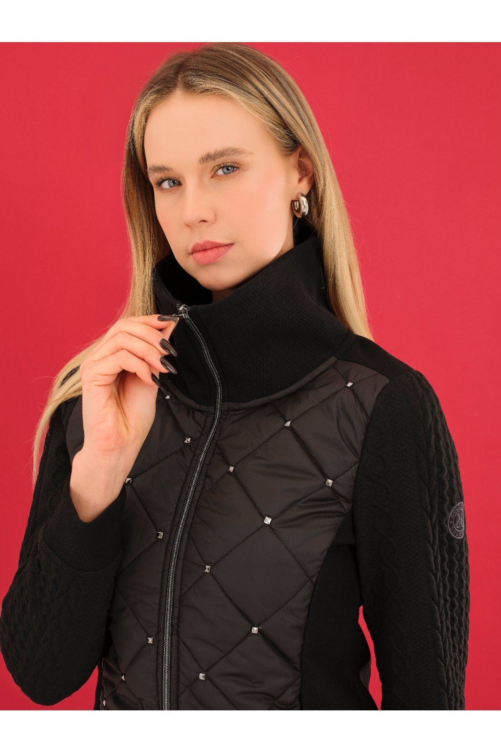 Štýlová dámska bunda v elegantnej čiernej farbe je ideálnym kúskom pre moderný a sebavedomý look. Kombinuje prešívanú prednú časť s jemnými kovovými detailmi a pružné rukávy, ktoré zaisťujú maximálne pohodlie pri nosení. Má vyšší stojačik a zapínanie na zips, vďaka čomu skvele chráni pred chladom. Perfektná voľba pre každodenné nosenie aj mestský štýl - ľahko ju skombinujete s džínsami aj elegantnejším outfitom.