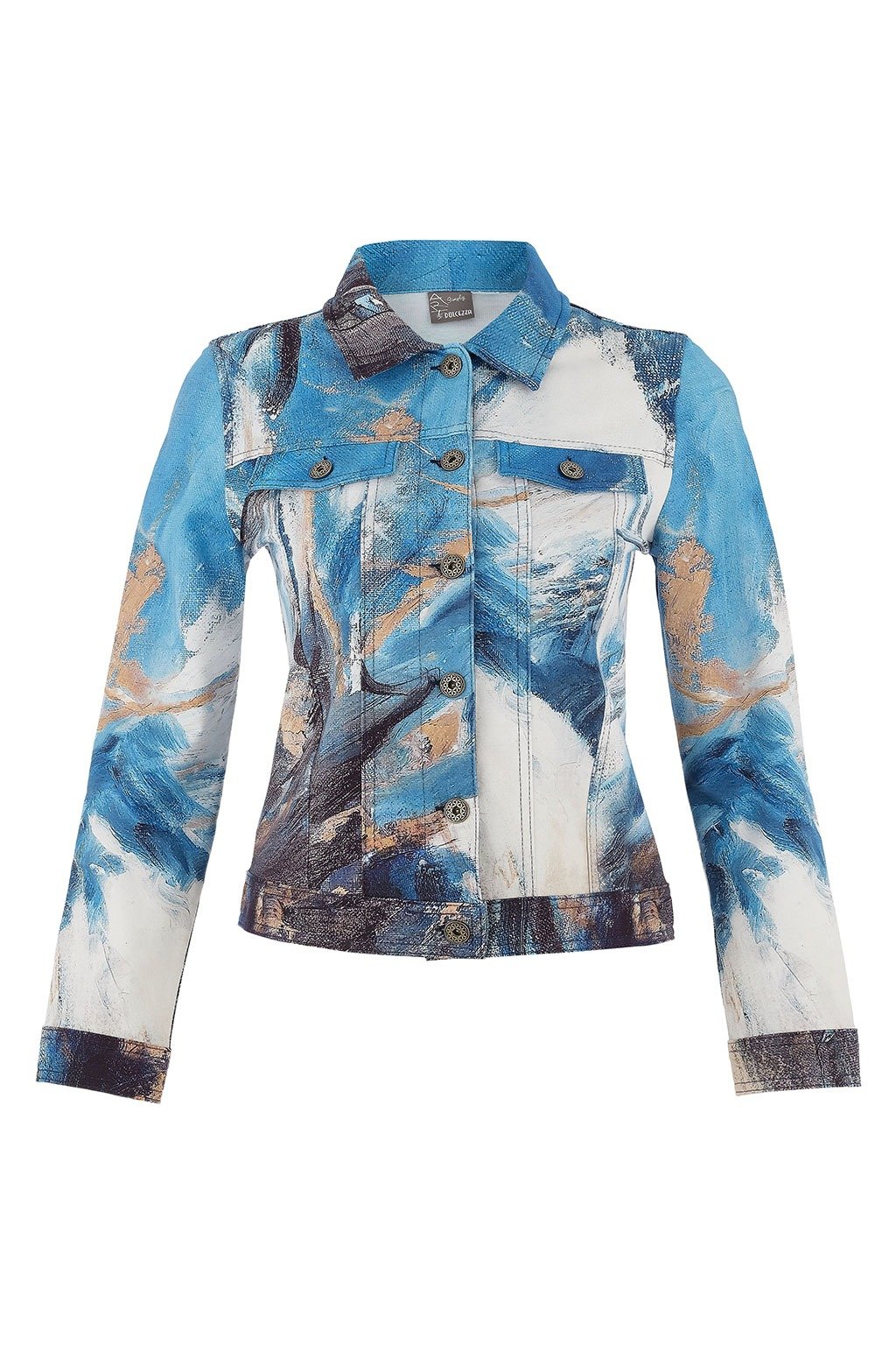 Dámska bunda Dolcezza z denimu s originálnym abstraktným vzorom spája ležérny a poloelegantný štýl, takže sa stane univerzálnym kúskom tvojho šatníka. Má pohodlný regular fit strih, siaha do bokov, zdobí ju golier, zapínanie na gombíky a dlhé rovné rukávy. Praktické detaily v podobe gombíkov a vreciek dodávajú bunde každodennú využiteľnosť, zatiaľ čo podiel elastanu v materiáli zaisťuje príjemné nosenie.