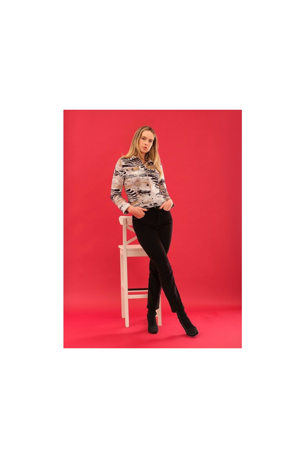 Vzorovaná dámska bundička, ktorá spája štýl a praktickosť. Výrazný dizajn dodá šmrnc každému outfitu, zatiaľ čo ľahký a pohodlný materiál zaisťuje príjemné nosenie po celý deň. Perfektná voľba na prechodné obdobie aj chladnejšie letné večery – ideálna pre ženy, ktoré chcú vyniknúť a zároveň sa cítiť skvele.