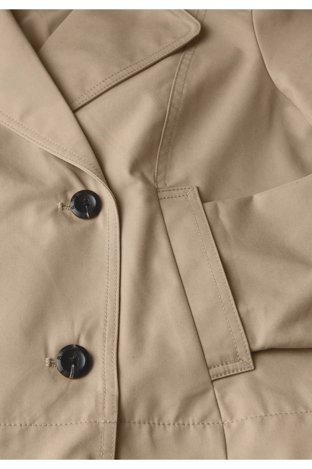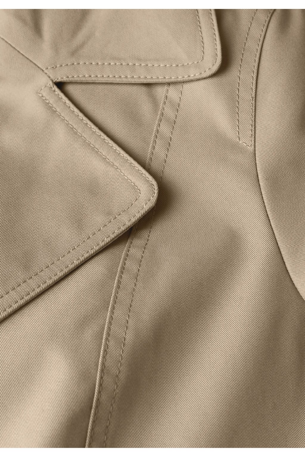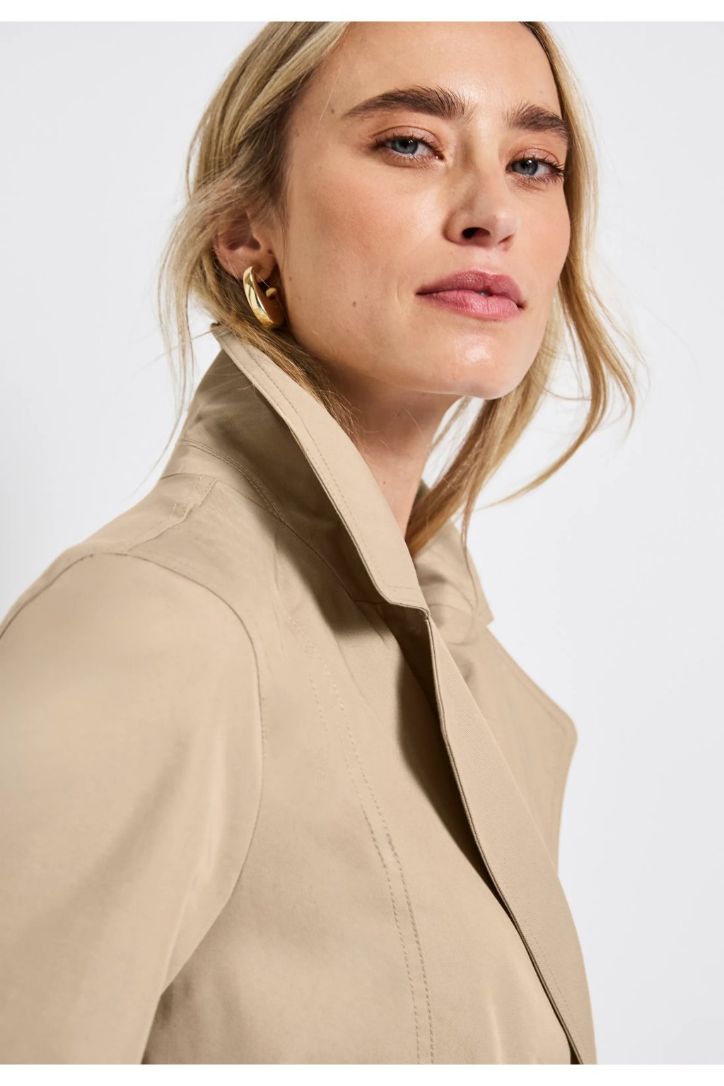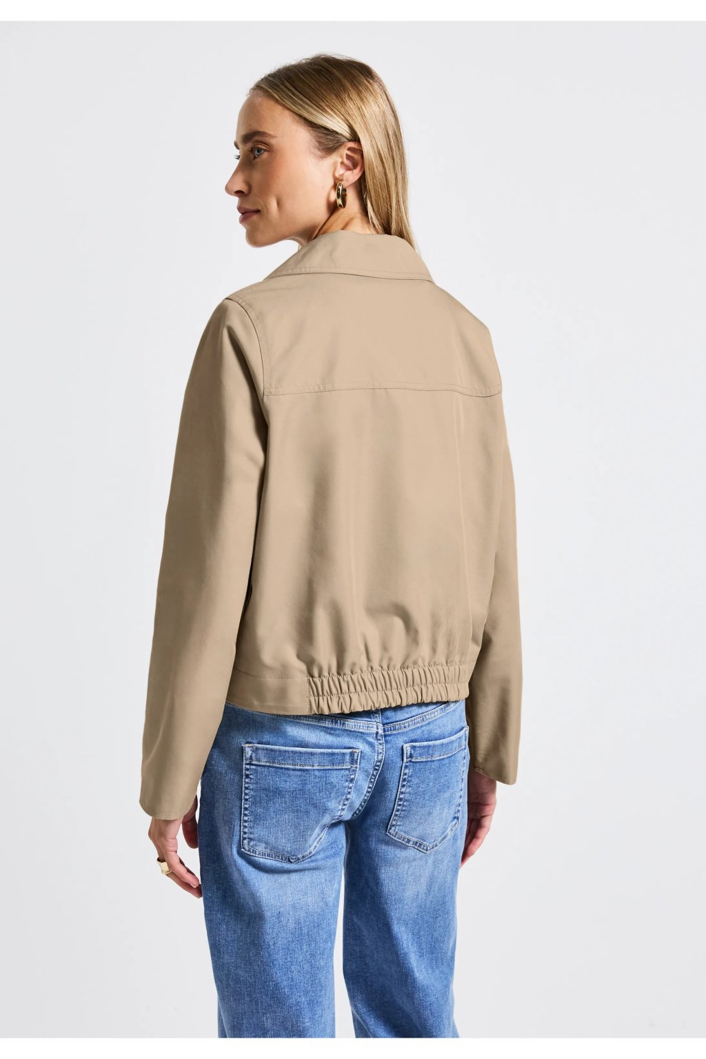 Tento krátky trenčkot od Street One pre ženy kombinuje klasický štýl s modernými detailmi. Zapínanie na dva gombíky, elegantný klopový golier a bočné vrecká vytvárajú charakteristický trenčkotový vzhľad, zatiaľ čo elastický pás vzadu vytvára ženskú siluetu. Táto ľahká bunda, vyrobená z robustného kepru, je ideálnym doplnkom k štýlovým prechodným outfitom.
