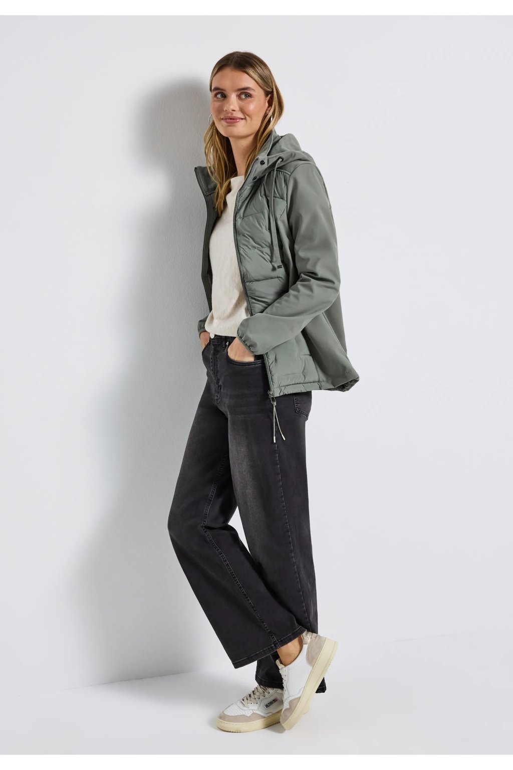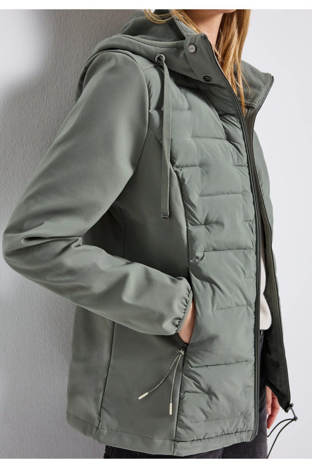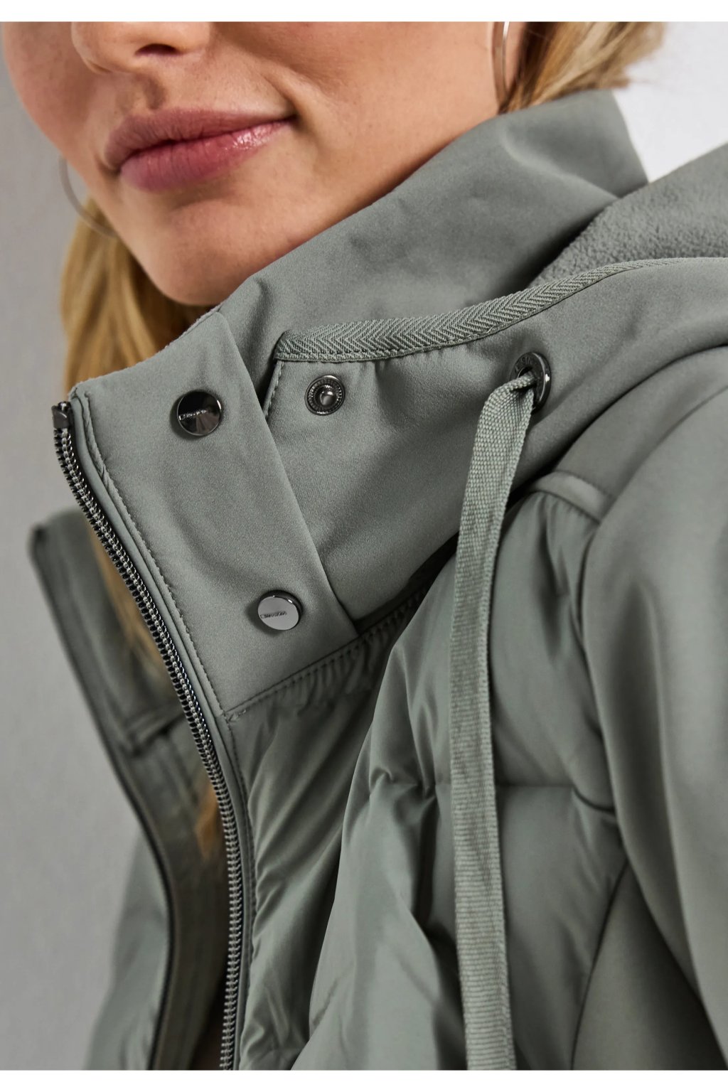 Táto dámska softshellová bunda od Street One zaujme svojim športovým textúrovaným vzhľadom a funkčnými detailmi. Zips, kapucňa so sťahovacou šnúrkou a bočné vrecká z nej robia ideálneho spoločníka pre prechodné ročné obdobia. Mäkká tkanina zaisťuje pohodlné nosenie za každého počasia.