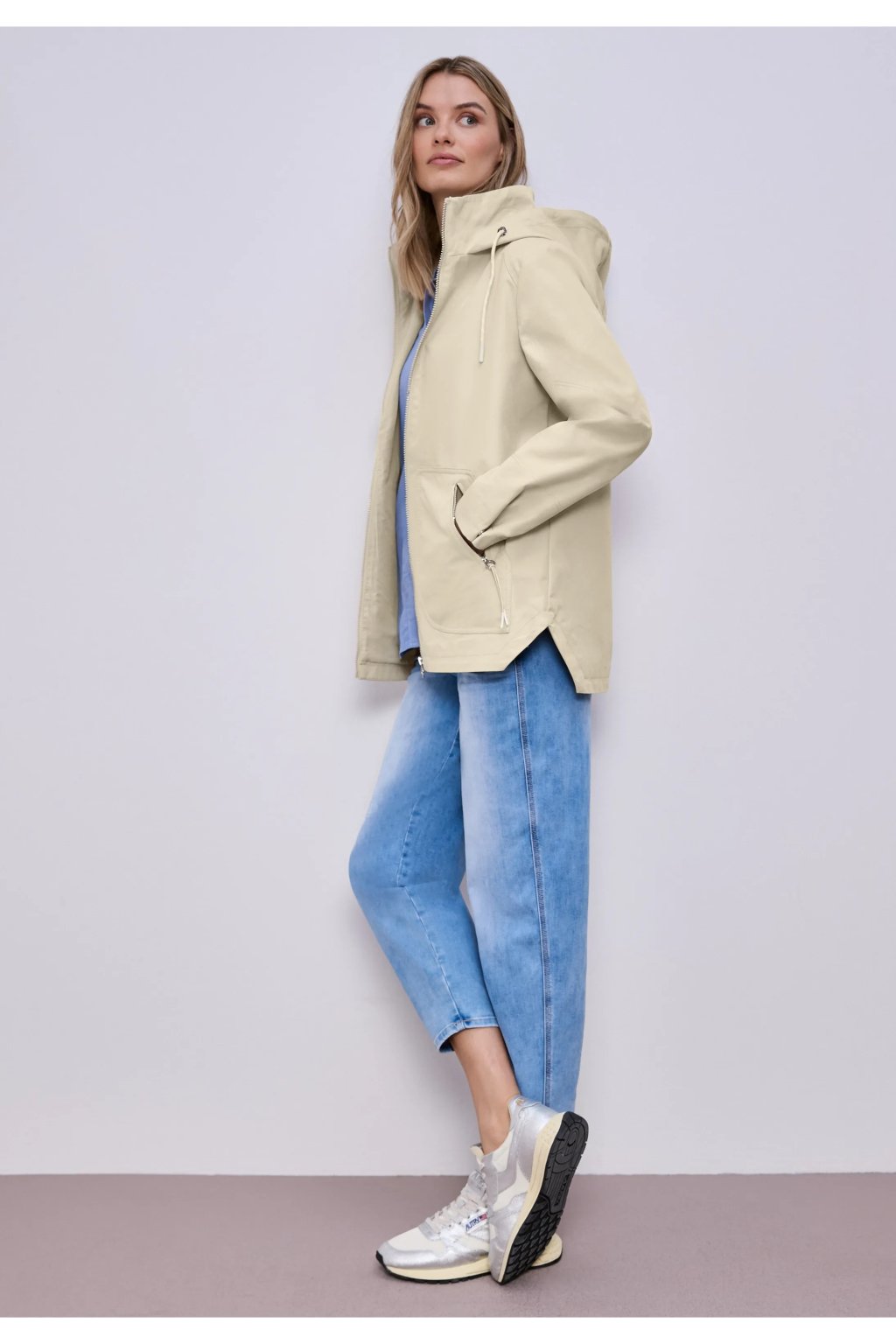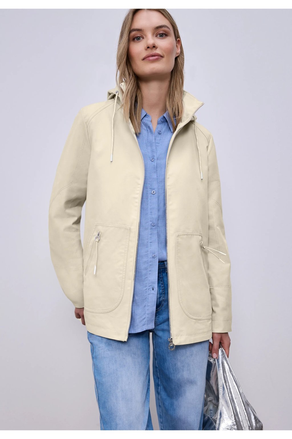 Táto parka od Street One, vyrobená z keprovej tkaniny, ponúka moderný, ležérny štýl s kapucňou, zapínaním na zips, bočnými vreckami na zips a nitovými detailmi na rukávoch – zároveň je výrazná a ženská. Hranatý lem s bočnými rázporkami, kapucňa so sťahovacou šnúrkou a pohodlná bavlnená zmes dopĺňajú vzhľad s praktickou všestrannosťou. Táto parka s dlhým rukávom a čistým dizajnom vás štýlovo prevedie po celú sezónu.