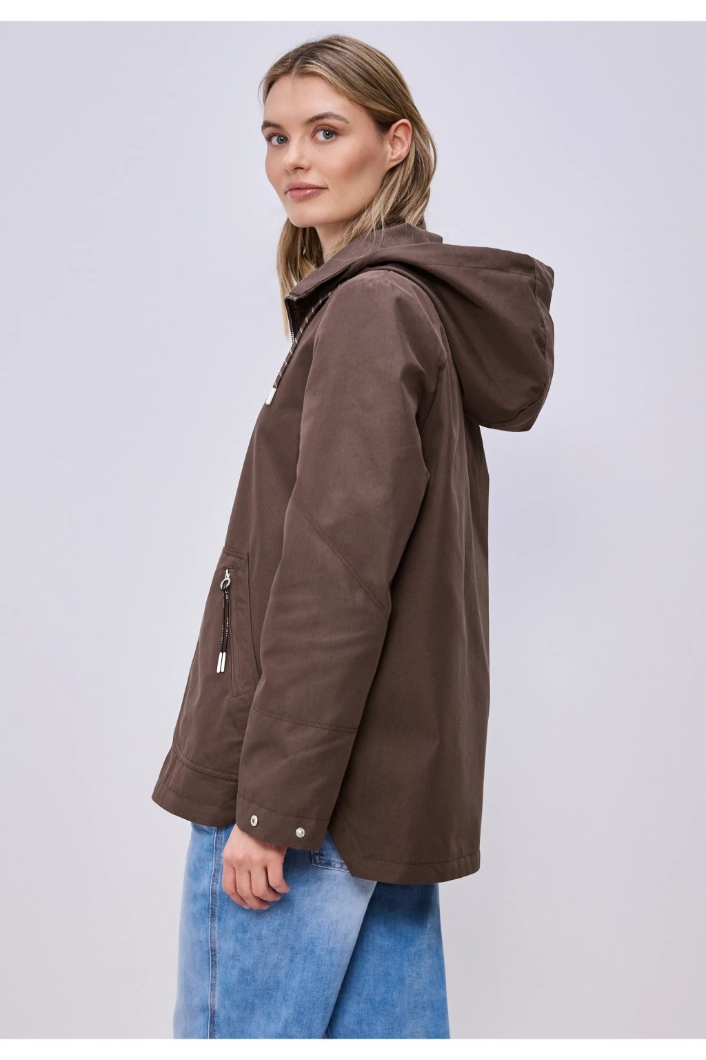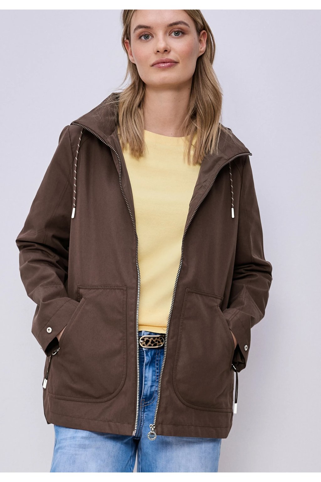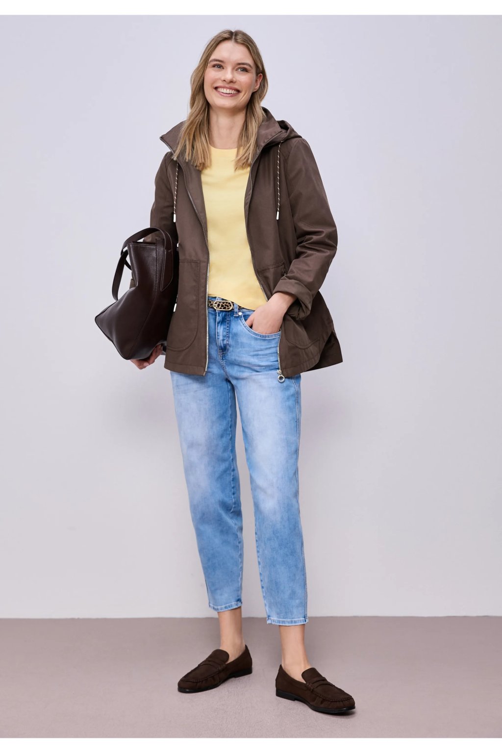 Táto parka od Street One, vyrobená z keprovej tkaniny, ponúka moderný, ležérny štýl s kapucňou, zapínaním na zips, bočnými vreckami na zips a nitovými detailmi na rukávoch – zároveň je výrazná a ženská. Hranatý lem s bočnými rázporkami, kapucňa so sťahovacou šnúrkou a pohodlná bavlnená zmes dopĺňajú vzhľad s praktickou všestrannosťou. Táto parka s dlhým rukávom a čistým dizajnom vás štýlovo prevedie po celú sezónu.