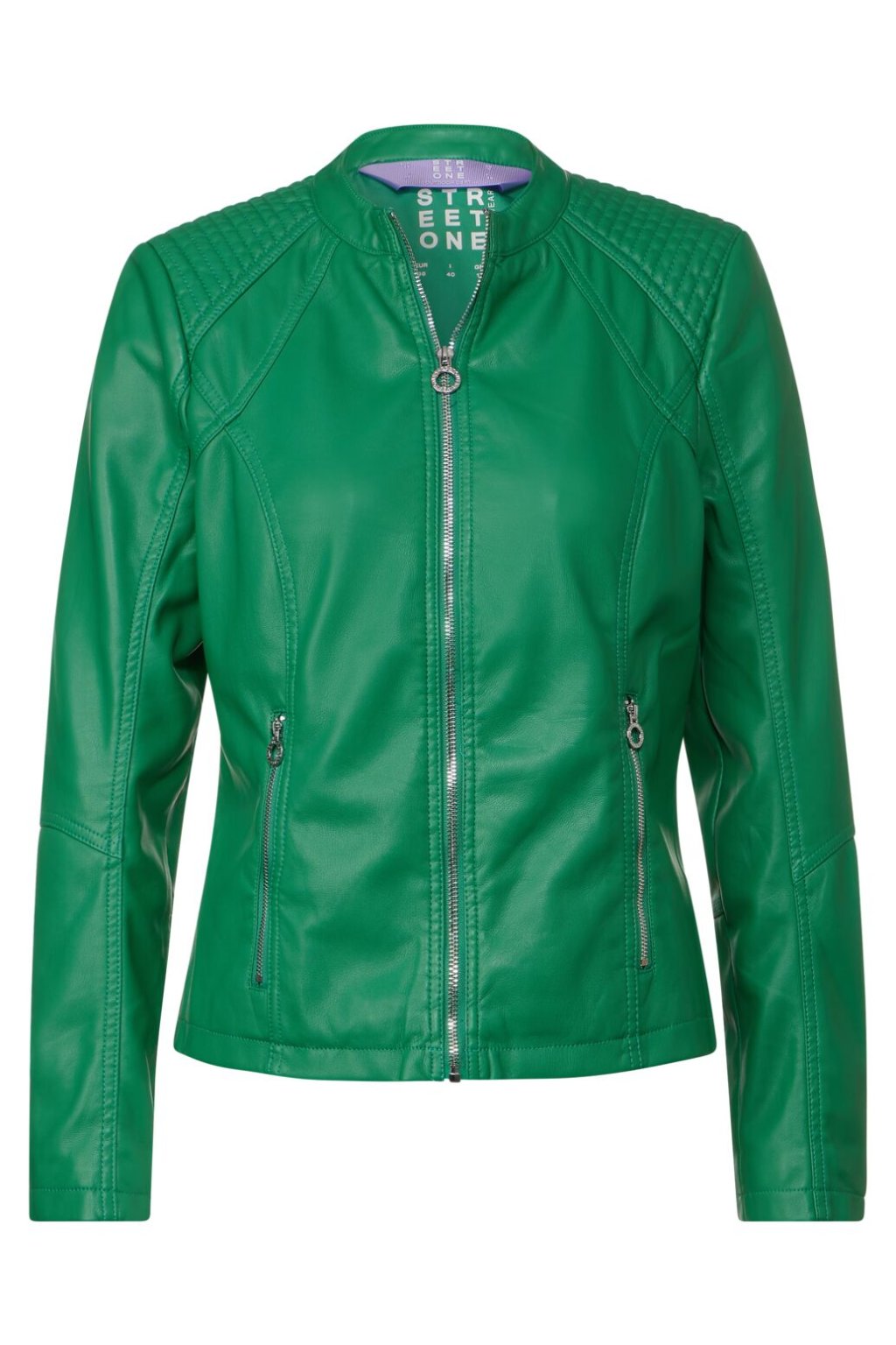Bunda koženého vzhľadu od Street One je štýlovým spoločníkom s ľahkým stojačikom, zipsom a uzamykateľnými vreckami. Táto dámska bunda v motorkárskom štýle vám umožní kombinovať cool outfity, zatiaľ čo vnútorná podšívka zaistí pohodlné nosenie. S touto PU bundou môžete vytvoriť ležérny a trendy vzhľad.