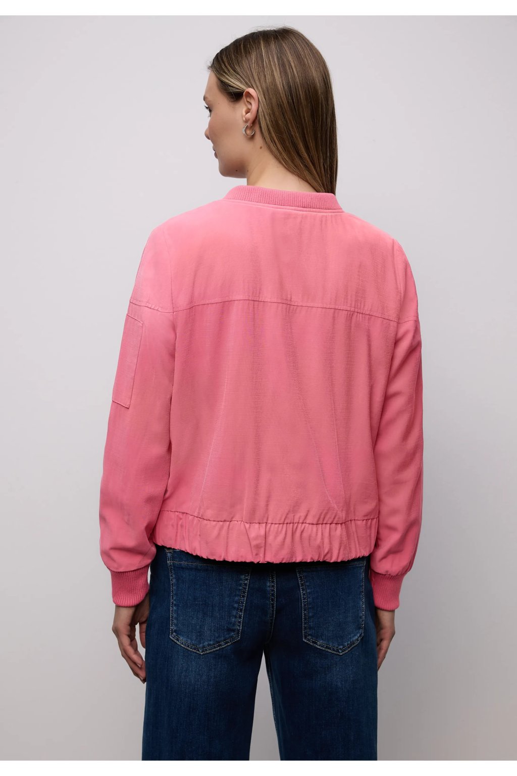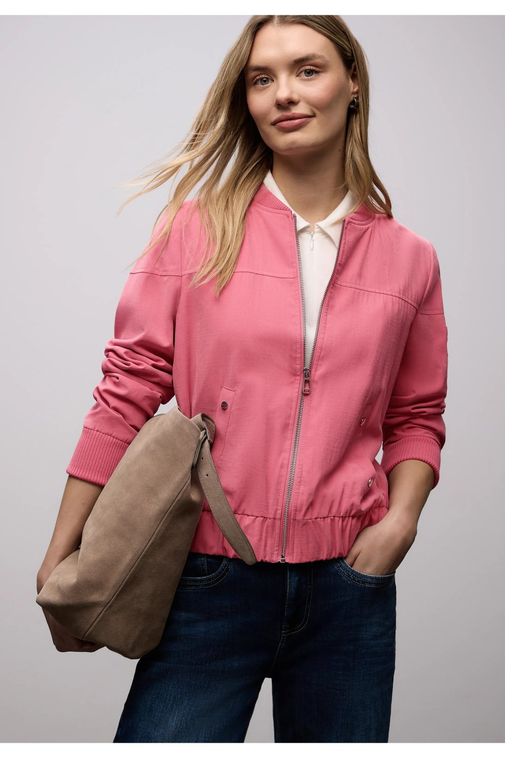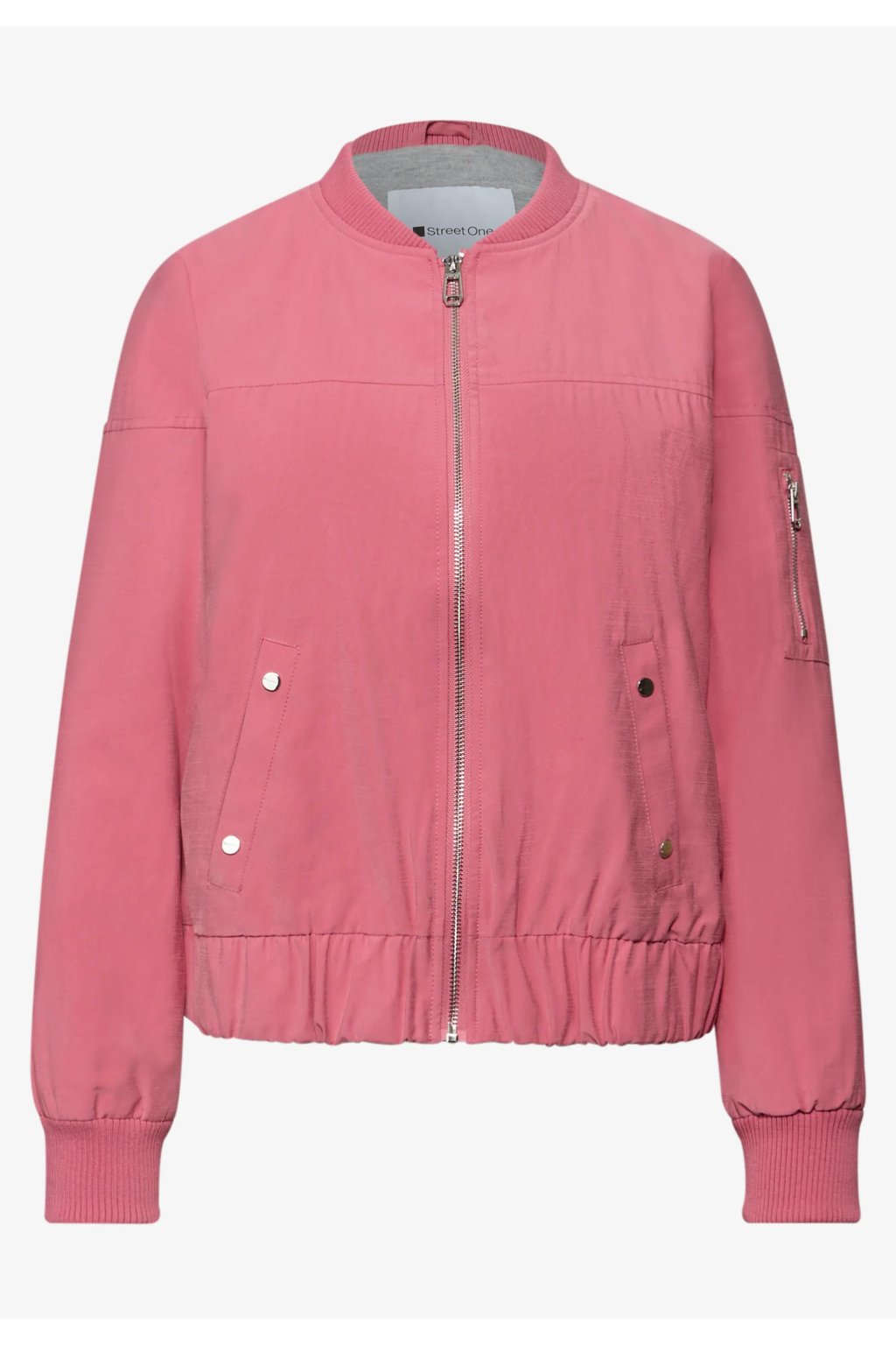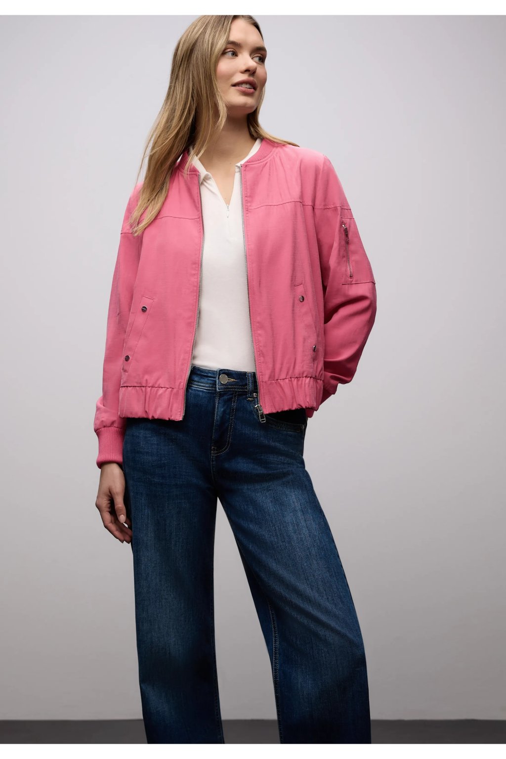 Táto dámska bunda blouson od Street One zaujme svojim uvoľneným a ležérnym vzhľadom: okrúhly výstrih, zapínanie na zips a bočné vrecká zaisťujú pohodlie aj štýl. Vrecko na zips na rukáve dodáva bunde moderný nádych, zatiaľ čo dlhé rukávy s manžetami dotvárajú celkový vzhľad. Mäkká džersejová podšívka zaisťuje pohodlné nosenie bundy.