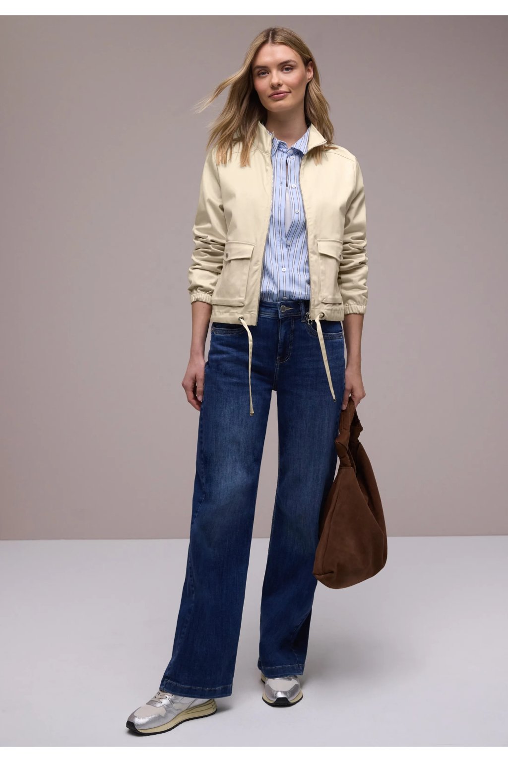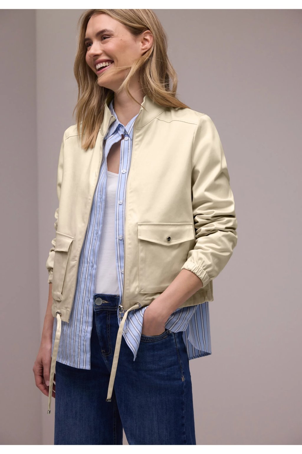 Táto dámska softshellová bunda od Street One zaujme svojim moderným vzhľadom a pohodlným pocitom. Stojačik, zips po celej dĺžke a elastické manžety dotvárajú vzhľad a sú ideálne na každodenné nosenie. Sťahovacia šnúrka na spodnom leme umožňuje individuálne prispôsobenie a bočné vrecká ponúkajú praktický úložný priestor. Perfektná prechodná bunda pre športovo-ležérne outfity.
