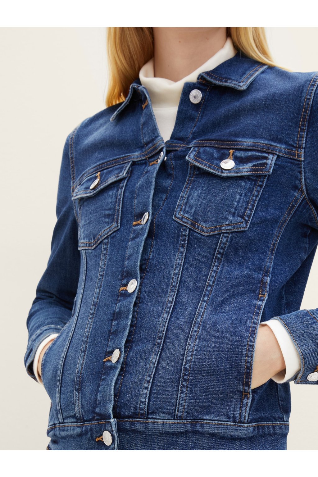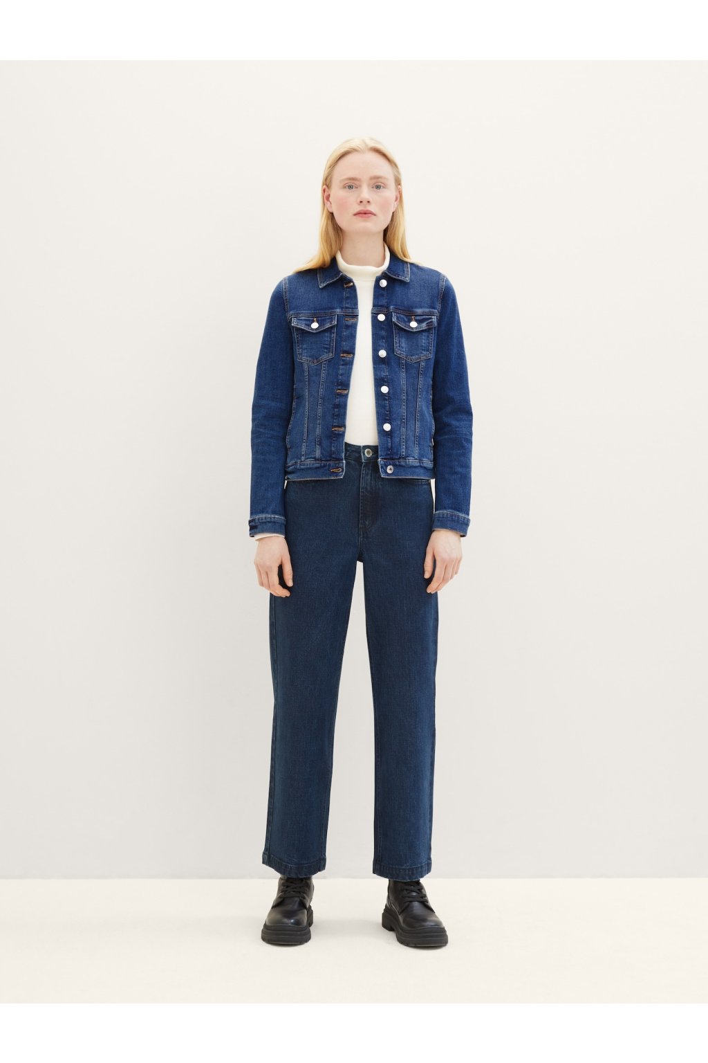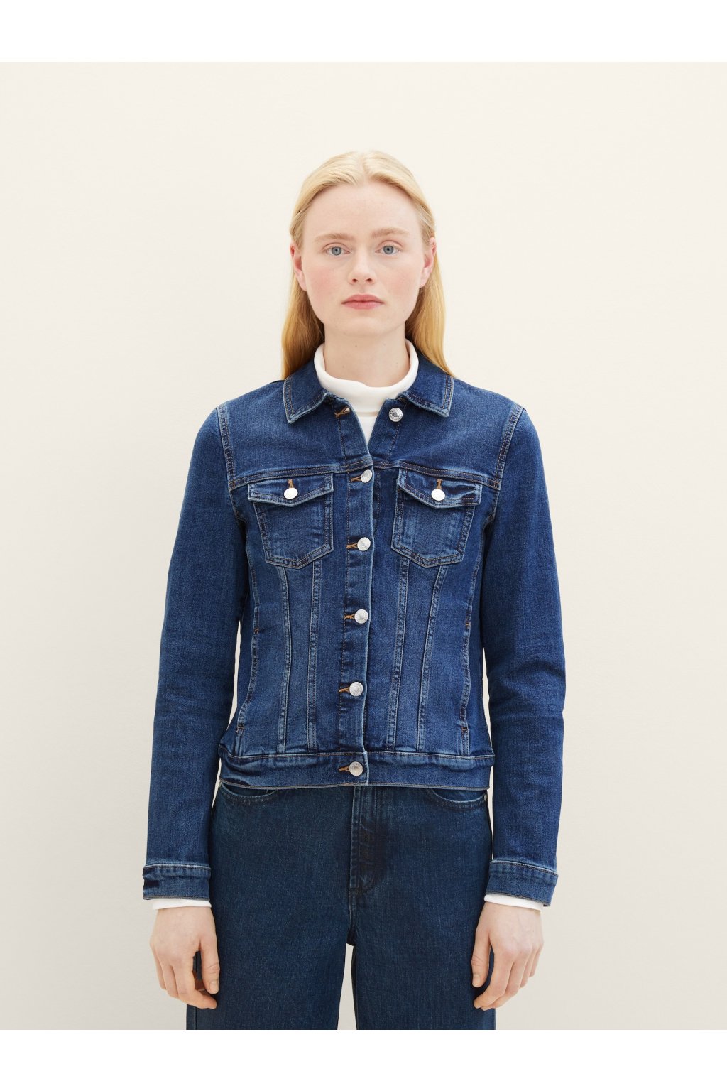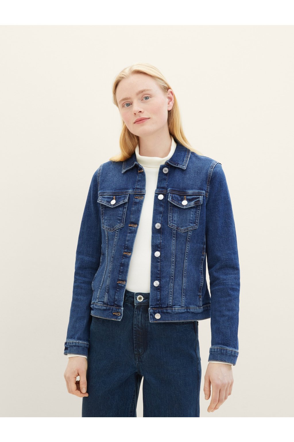 Táto klasická modrá džínsová bunda je ideálnym doplnkom pre každodenný outfit. S ikonickým dizajnom a kvalitným materiálom vám poskytne pohodlie a šmrnc v každej situácii. Zapínanie na gombíky a dve vrecká zaisťujú praktické nosenie, zatiaľ čo strih, ktorý nikdy nevyjde z módy, sa hodí ku všetkým štýlom – či už k šatám alebo k pohodlným džínsom.