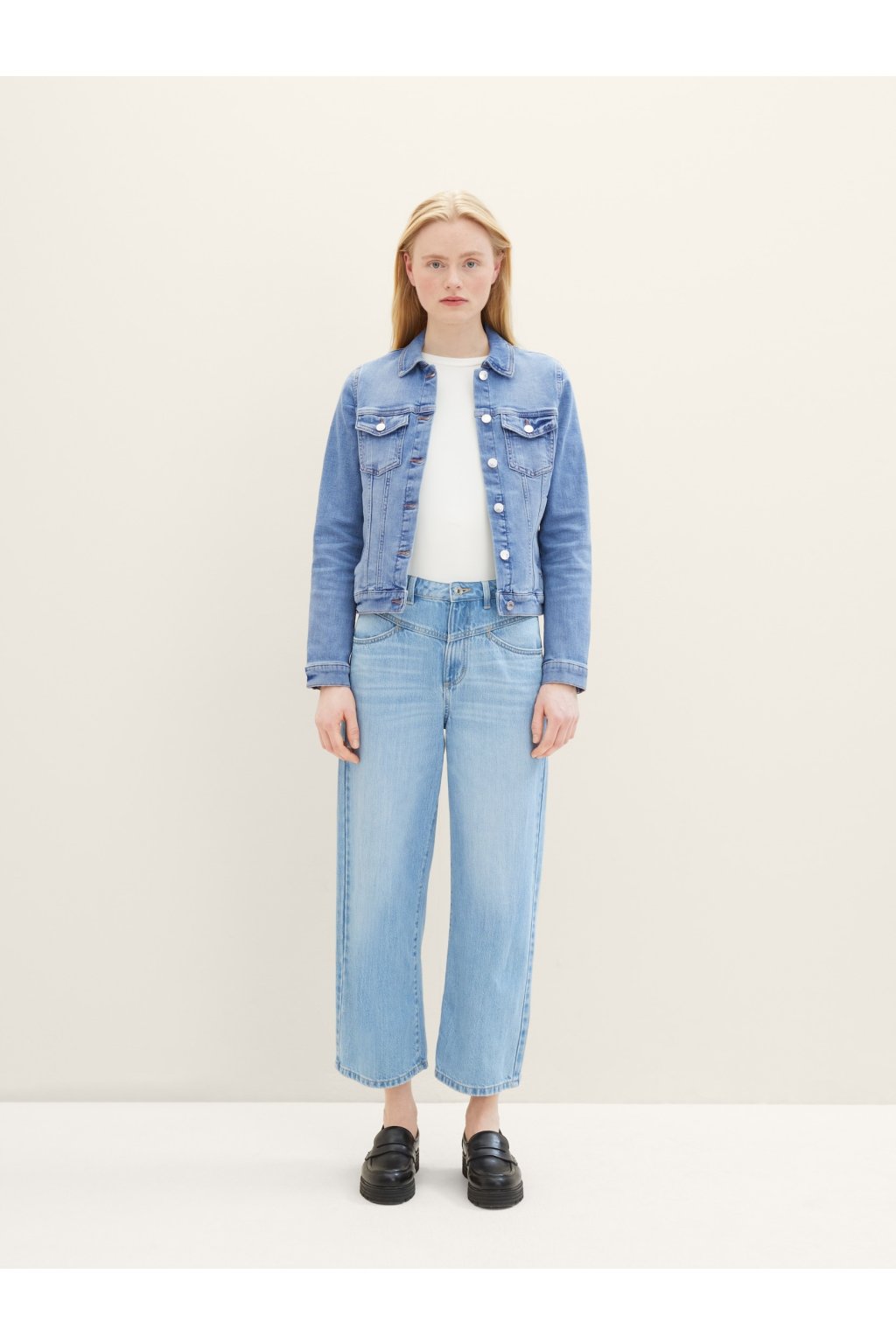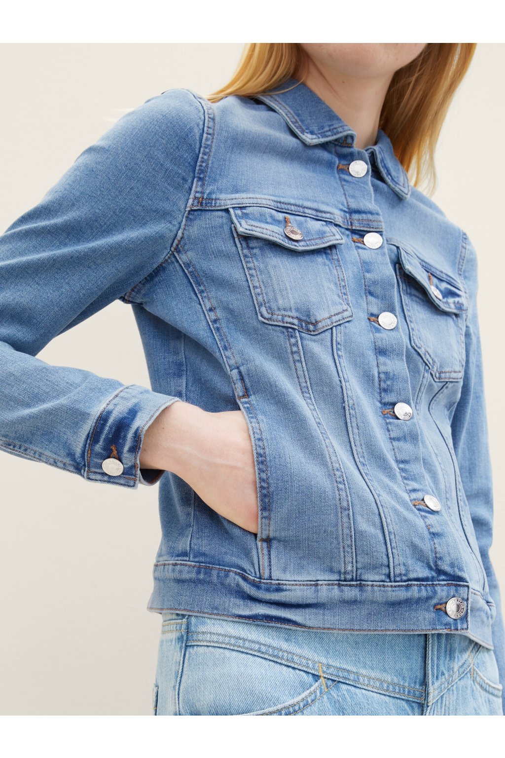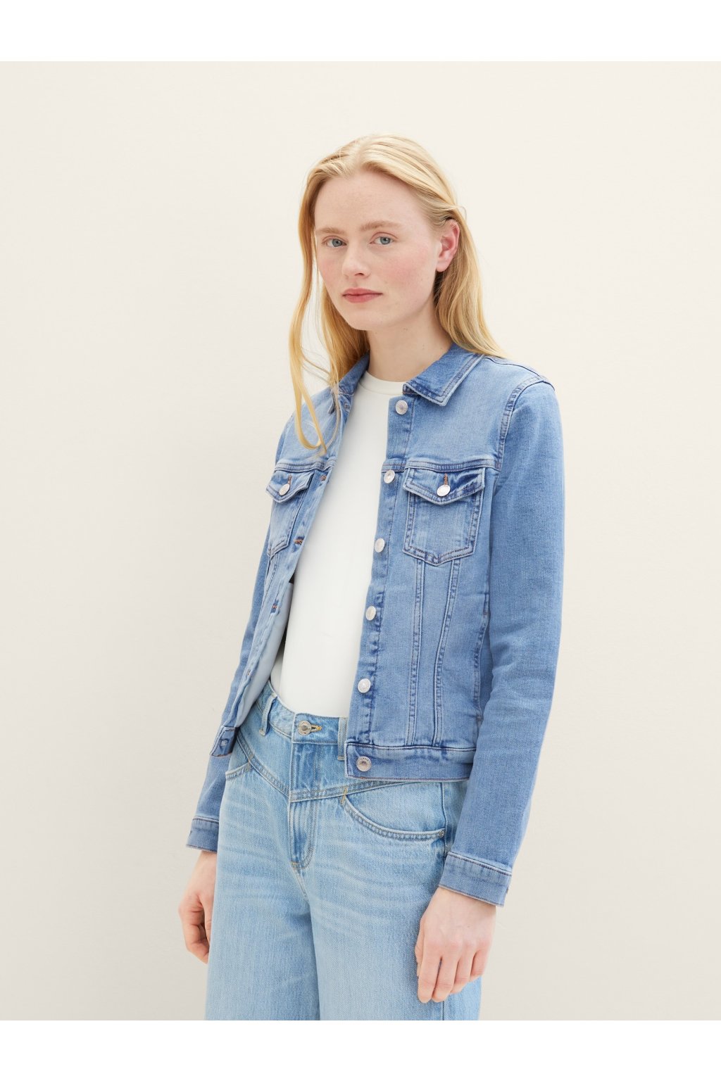 Táto klasická modrá džínsová bunda je ideálnym doplnkom pre každodenný outfit. S ikonickým dizajnom a kvalitným materiálom vám poskytne pohodlie a šmrnc v každej situácii. Zapínanie na gombíky a dve vrecká zaisťujú praktické nosenie, zatiaľ čo strih, ktorý nikdy nevyjde z módy, sa hodí ku všetkým štýlom – či už k šatám alebo k pohodlným džínsom.