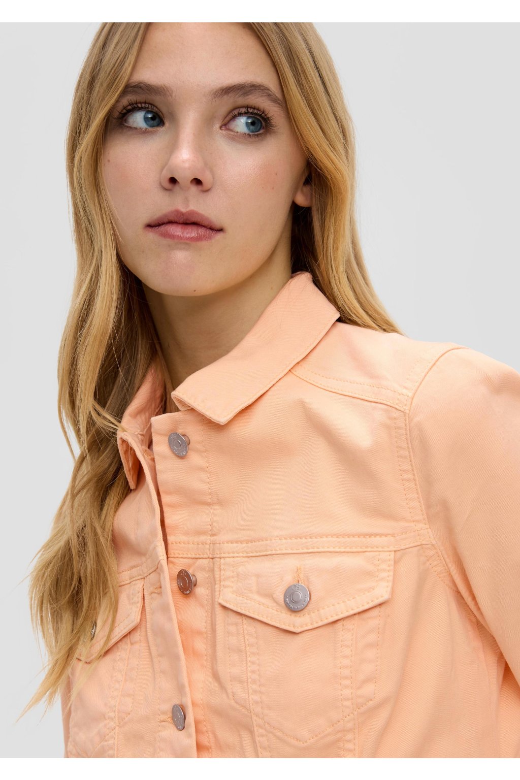 Dámska džínsová bunda s.Oliver je všestranným doplnkom vášho šatníka. Vďaka svojmu klasickému dizajnu, vrátane goliera, gombíkovej légy a náprsných vreciek, sa skvele hodí k rôznym outfitom. Obľúbený farebný variant mu dodáva svieži vzhľad a robí z neho ideálneho prechodného spoločníka, ktorého je možné ľahko kombinovať s rôznymi farbami a vzormi.