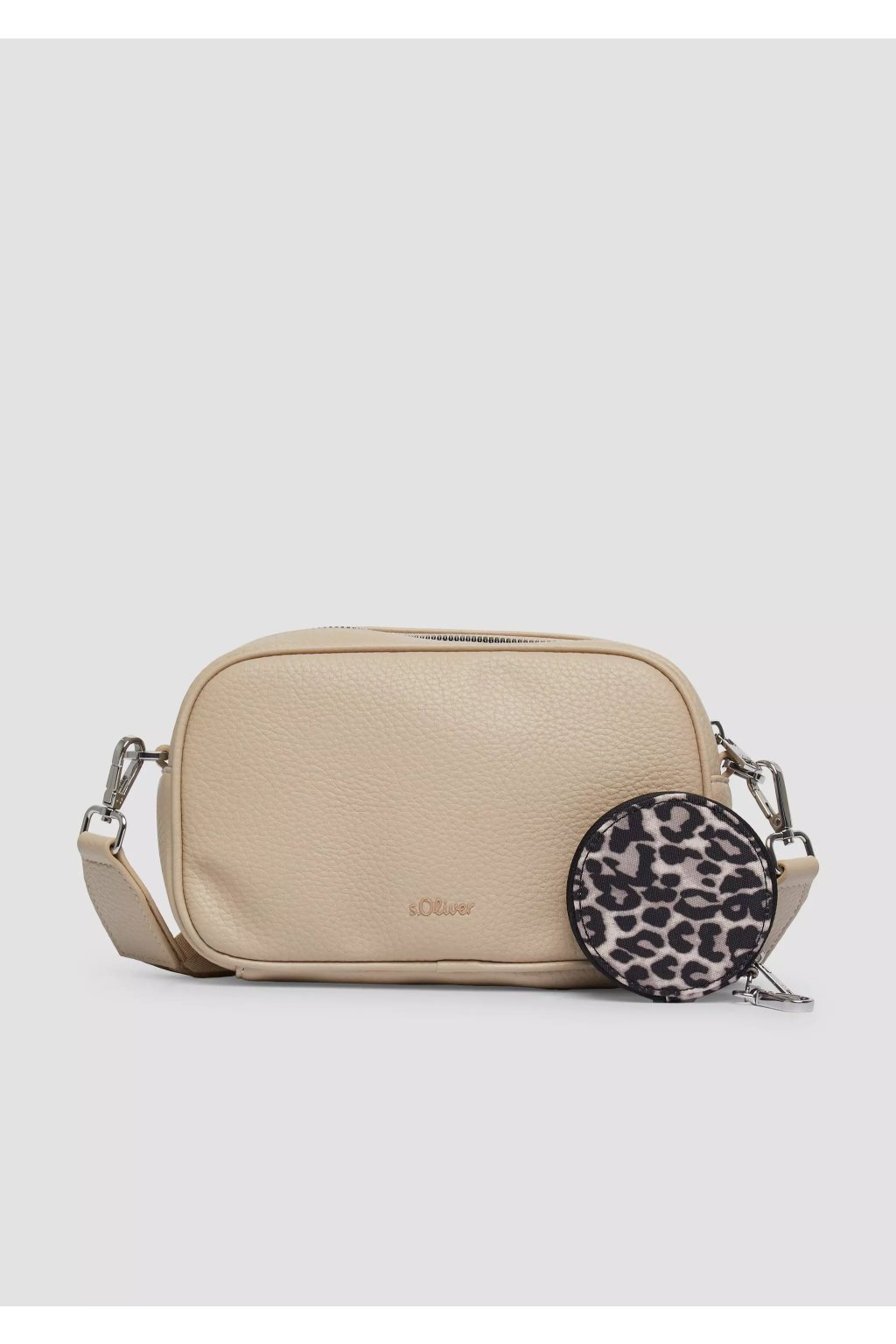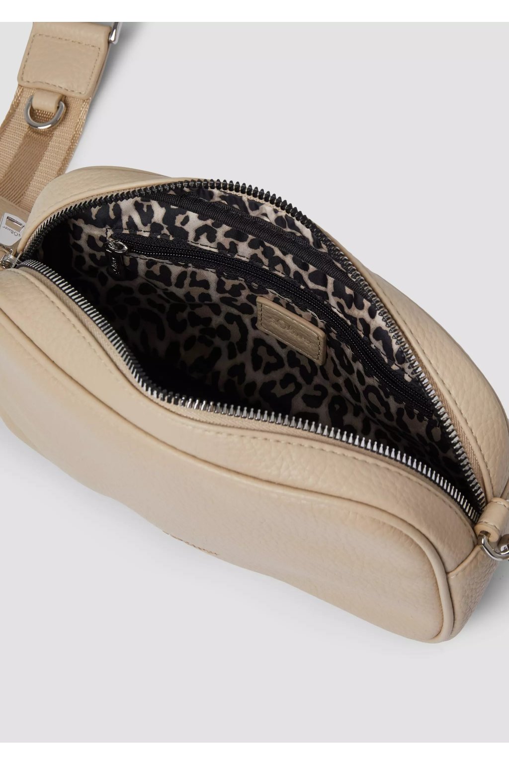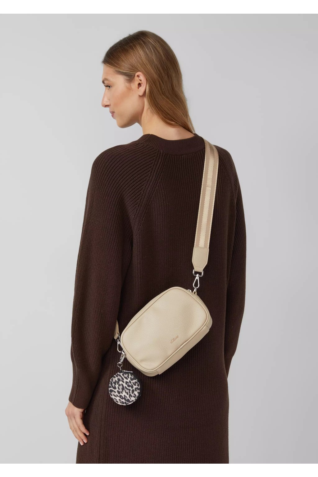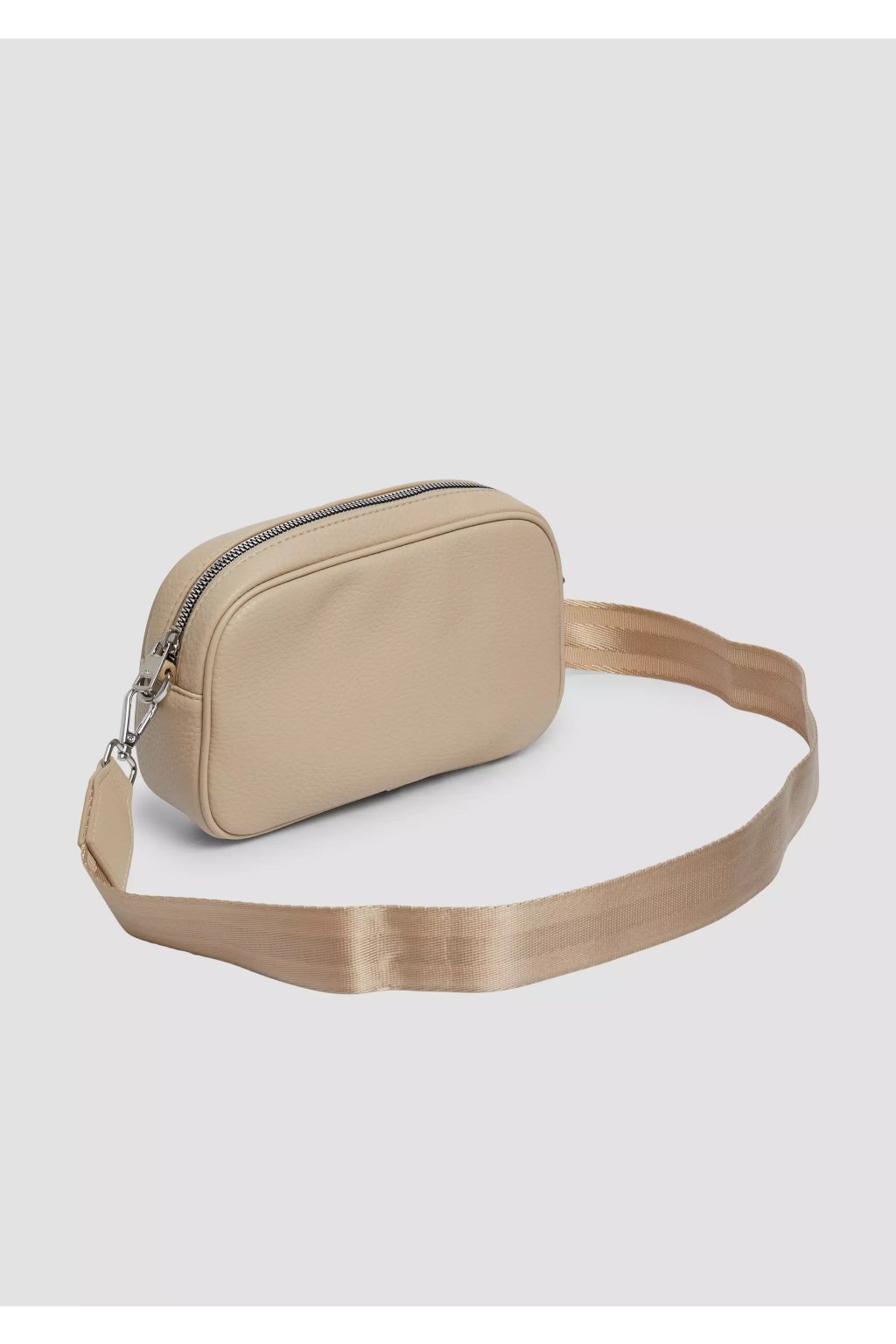 Stredne veľká kabelka z imitácie kože s praktickým zapínaním na zips a odnímateľným ramenným popruhom nastaviteľnej dĺžky. Vďaka tkanine v podšívke, vnútornom vrecku na zips a logom ako decentnému detailu je ideálnou spoločníčkou pre výlety aj bežné dni v meste.