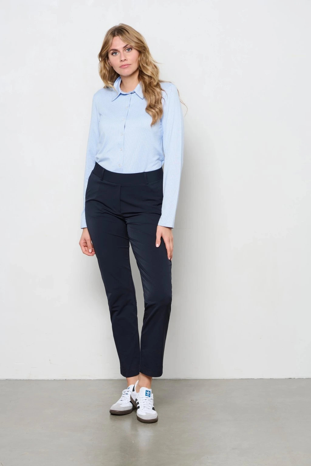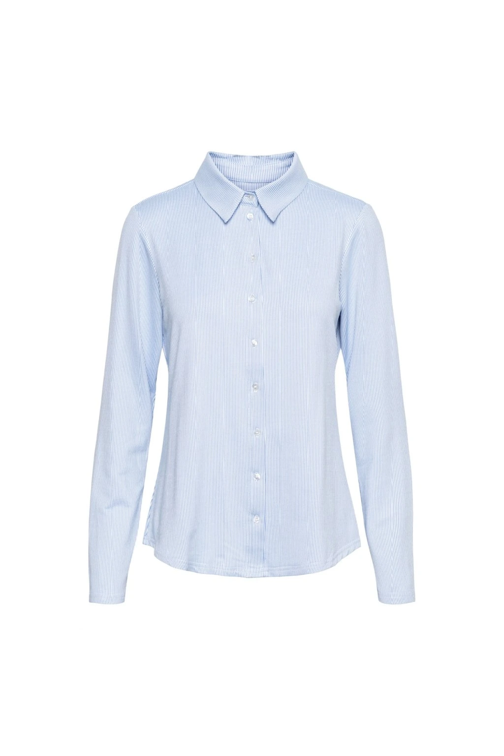 Elegantná dámska košeľa v jemnom svetlo modrom odtieni je ideálnou voľbou pre každý deň aj formálnejšie príležitosti. Ľahký a príjemný materiál zaisťuje maximálne pohodlie, zatiaľ čo klasický strih s golierom pôsobí nadčasovo a upravene. Skvele sa kombinuje s nohavicami aj sukňou - perfektný kúsok do práce aj na voľný čas.