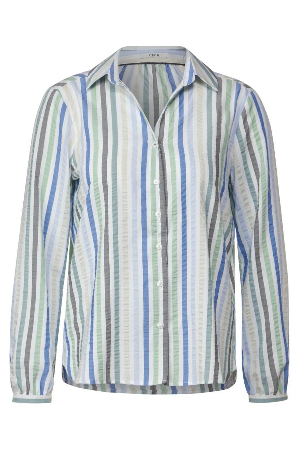 Blúzka Seersucker od CECIL je dámska košeľová blúzka so zaobleným lemom a klasickým golierom s gombíkovou légou. Blúzka má rôznofarebný pruhovaný vzor a vyznačuje sa kvalitou seersucker, ktorá nevyžaduje žehlenie. Dlhé rukávy je možné zapnúť na gombíky a ponúkajú ďalšiu stylingovú všestrannosť.