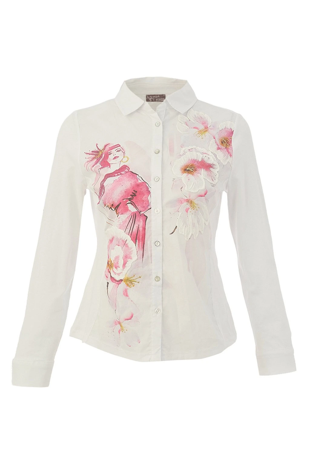 Štýlová dámska košeľa s jemným kvetinovým motívom a originálnou umeleckou potlačou dodá vášmu outfitu eleganciu aj ženský šmrnc. Klasický strih s golierom a zapínaním na gombíky pôsobí nadčasovo, zatiaľ čo výrazný dizajn z nej robí neprehliadnuteľný kúsok. Príjemný materiál zaisťuje pohodlie po celý deň - ideálne do práce, na schôdzky aj voľný čas. Skvele sa kombinuje s džínsami, sukňou aj elegantnými nohavicami.