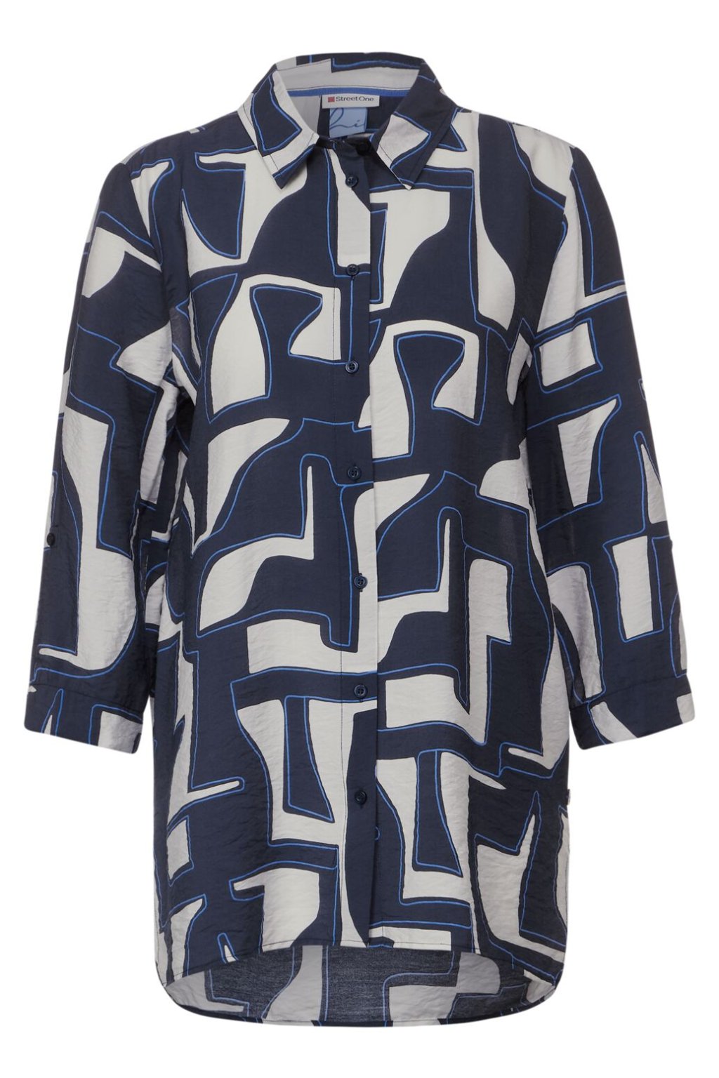 Dámska dlhá košeľa Street One je štýlový kúsok s vyhrnutými 3/4 rukávmi, golierom, gombíkovou légou a bočnými rázporkami v leme. Táto dlhá košeľa sa vyznačuje svojim nadčasovo moderným vzorom a ponúka vám štýlové možnosti kombinovania vašich outfitov. Vďaka svojmu atraktívnemu designu je ideálnym doplnkom k trendy a všestrannému vzhľadu.