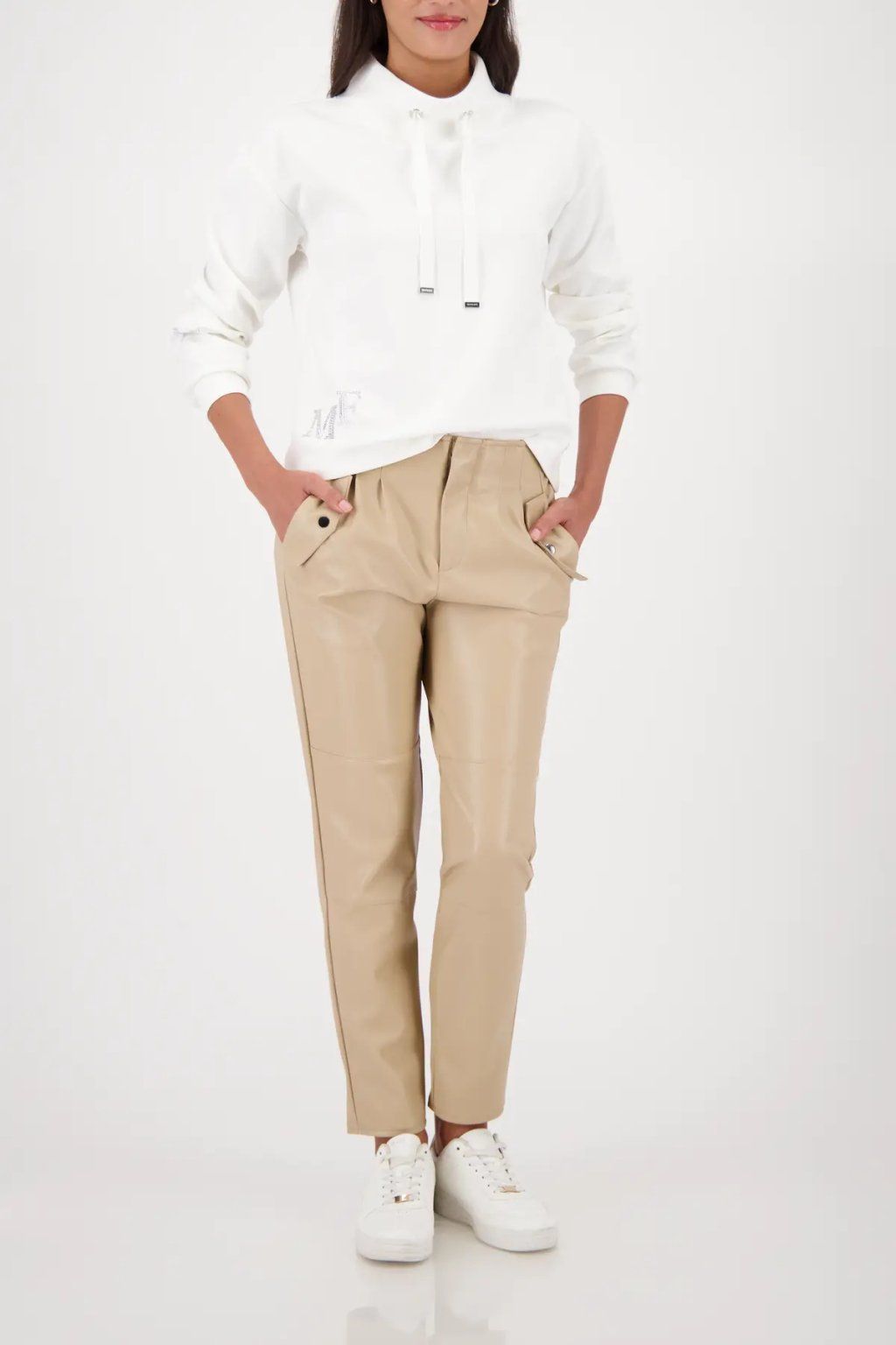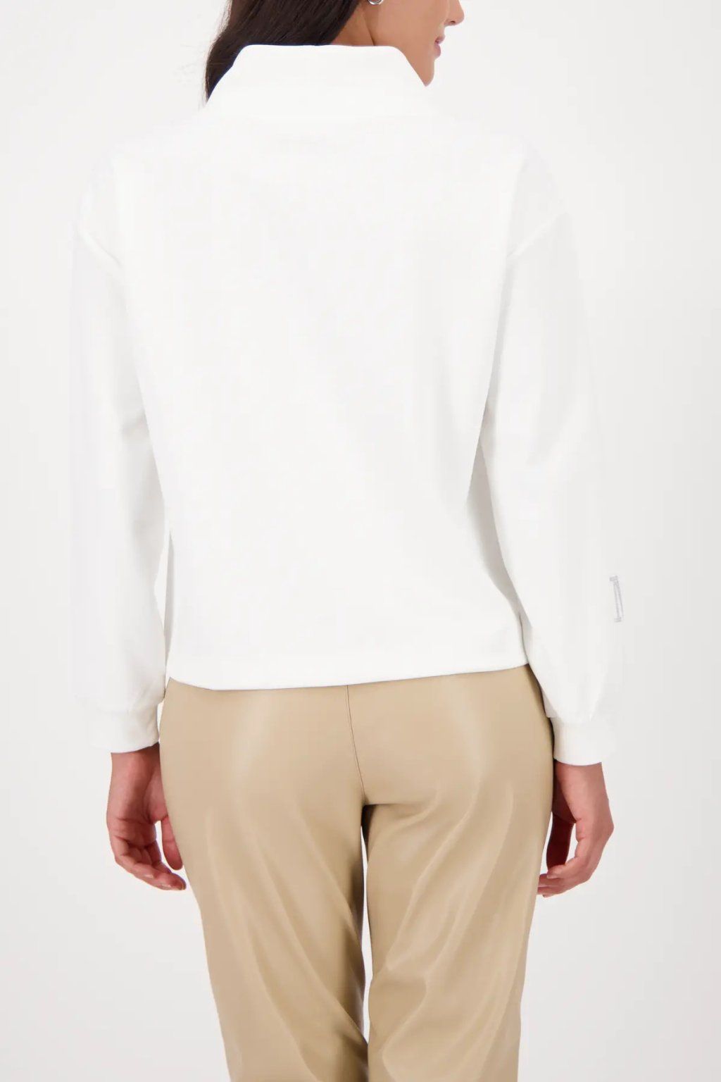 Dámska mikina v čisto bielom prevedení je elegantným a pohodlným kúskom, ktorý ľahko zapadne do každodenného šatníka. Má voľnejší strih, dlhé rukávy a vyšší stojačik so šnúrkami, ktoré dodávajú modelu moderný športovo-ležérny vzhľad. Jemný detail v podobe decentnej aplikácie v spodnej časti podčiarkuje jej originálny charakter bez toho, aby narušoval minimalistický dizajn. Vďaka univerzálnej farbe sa mikina skvele kombinuje s džínsami, nohavicami aj sukňou a hodí sa na voľný čas, cestovanie aj pohodlné mestské outfity. Príjemný a nadčasový kúsok, po ktorom siahnete vždy, keď chcete spojiť komfort so štýlom.