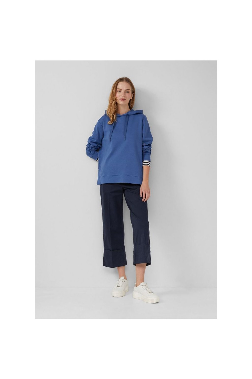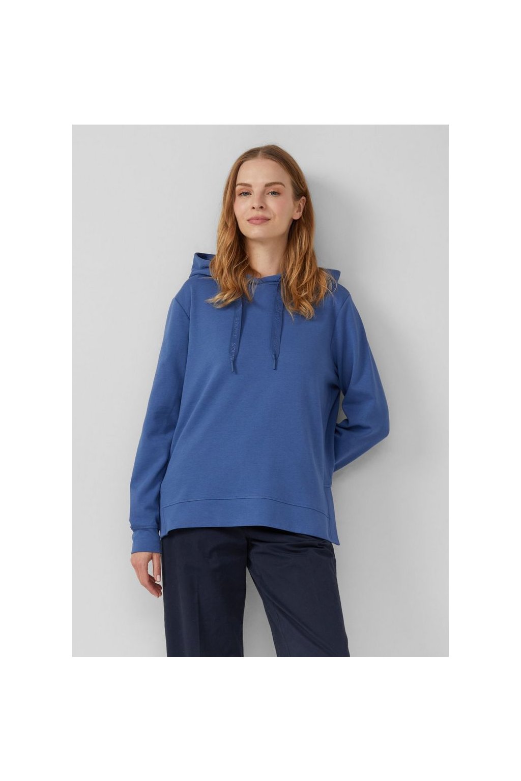 Pohodlie v štýle! Tento voľnejší mikinový strih je ideálny na lenivej nedele aj rýchle schôdzky pri káve. Mikina je vyrobená z príjemnej bavlnenej zmesi v mäkkom úplete, má kapucňu so sťahovacími šnúrkami, dlhé rukávy s manžetami a rázporkami po stranách, ktoré dopĺňa predĺžený zadný diel. Jednofarebný dizajn s decentným nápisom pôsobí ležérne a chic, takže sa skvele hodí ako na voľný čas, tak na každodenné nosenie.
