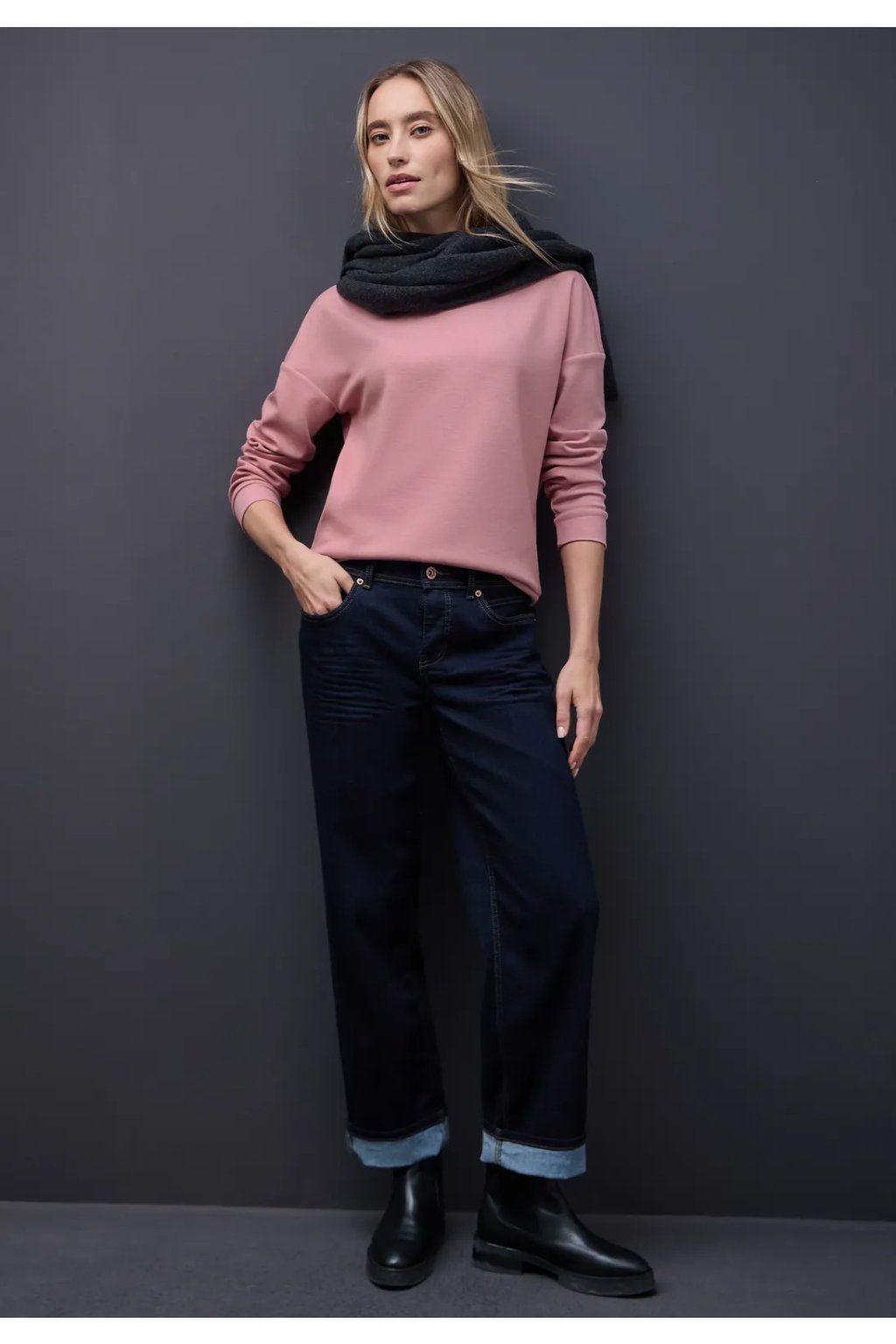 Toto tričko s dlhým rukávom od Street One pre ženy zaujme svojim moderným melanžovým vzhľadom a jemnými rebrovanými detailmi na okrúhlom výstrihu. Mäkké materiály ponúkajú celodenné pohodlie. Všestranné tričko na uvoľnený a ležérny štýl.
