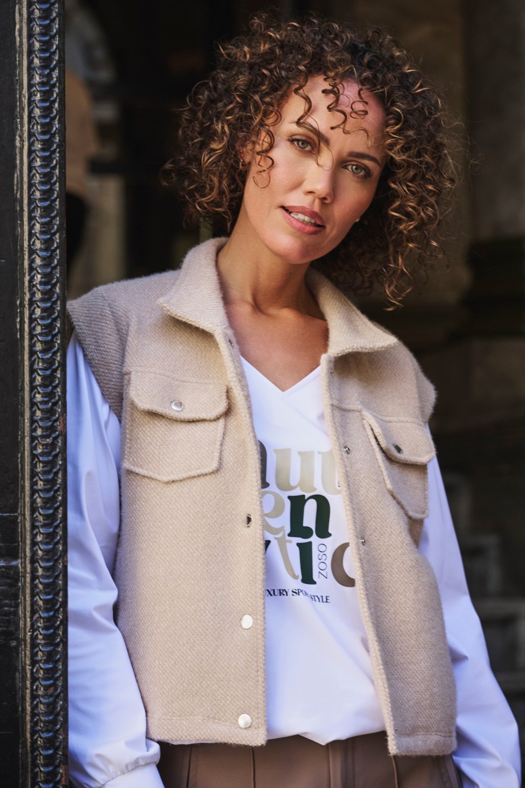 Dámsky Travel Sweater Audrey Blue od Zoso je štýlový kúsok s výraznou potlačou písmen, ktorý oživí tvoj outfit. V-výstrih dodáva ženskosť, zatiaľ čo pružná travel látka sa postará o maximálne pohodlie a voľnosť pohybu. Vďaka sťahovacej šnúrke v páse si ľahko vytvoríš siluetu podľa seba – športovo aj chic. ✨