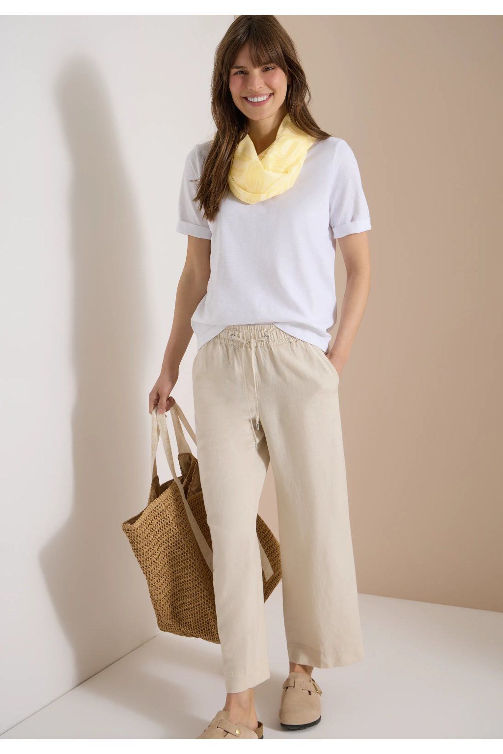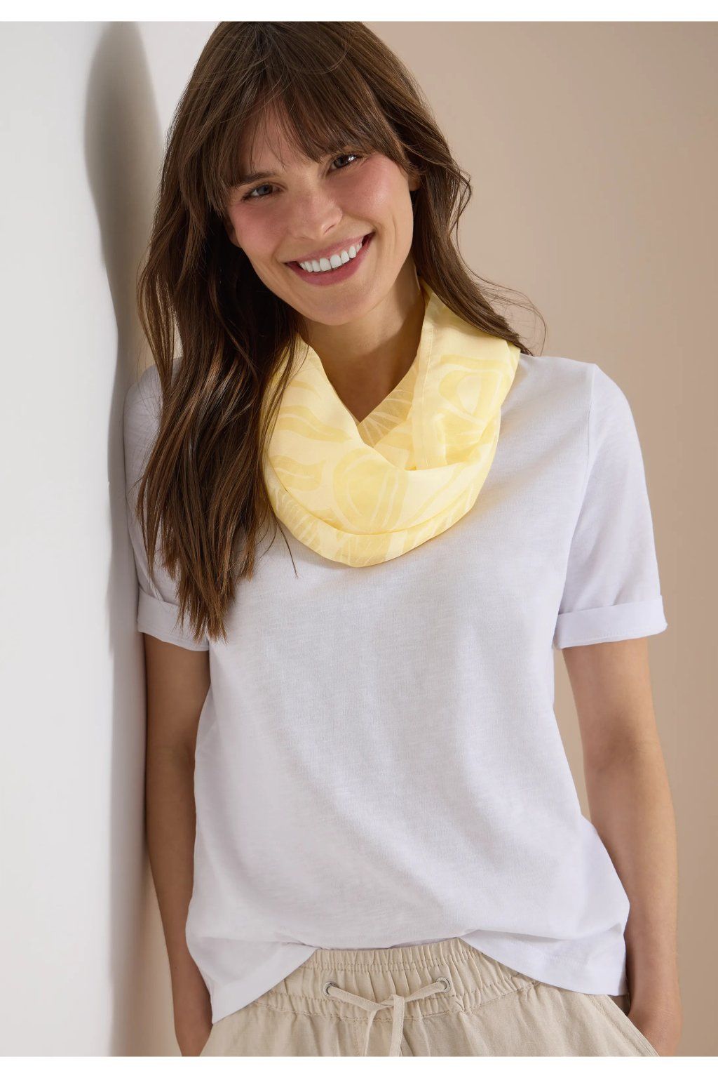 Ľahká dámska šatka v jemnom pastelovo žltom odtieni je elegantným doplnkom, ktorý rozžiari každý outfit. Decentný vzor pôsobí nežne a sviežo, zatiaľ čo príjemný vzdušný materiál zaisťuje komfort pri nosení po celý deň. Vďaka svojmu univerzálnemu prevedeniu sa skvele hodí k tričkám, blúzkam aj ľahkým bundám a ľahko doplní ako ležérny, tak ženský mestský štýl. Ideálna voľba pre tých, ktorí chcú outfit doladiť jemným, ale výrazne štýlovým detailom.