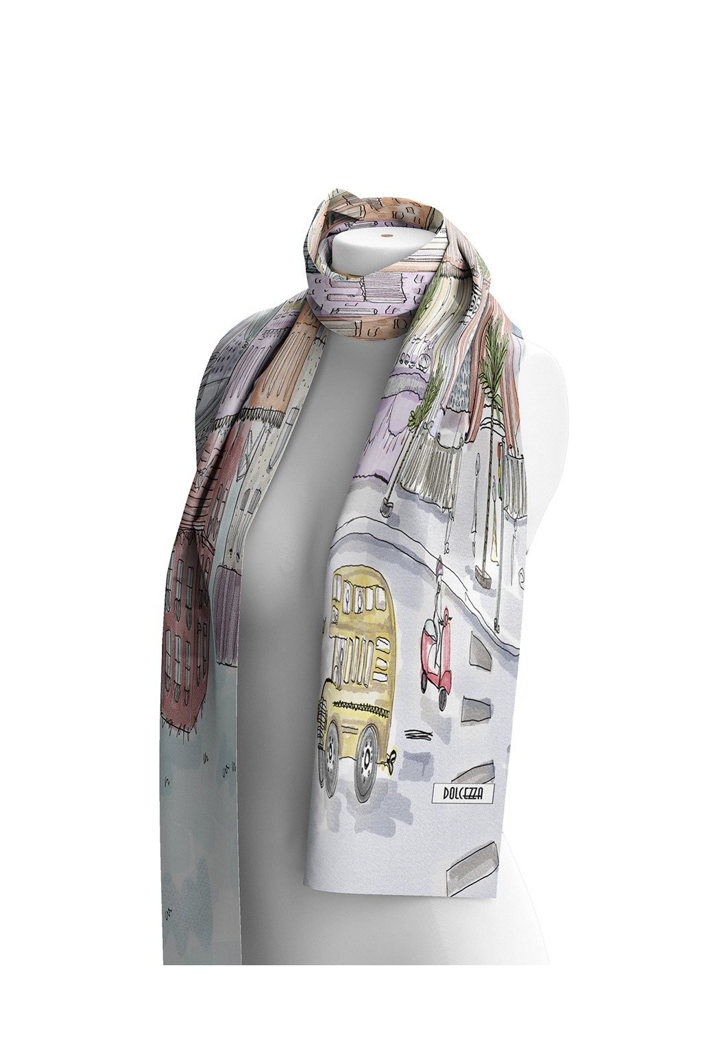 Ľahká dámska šatka s originálnym mestským motívom je hravým doplnkom, ktorý rozžiari každý outfit. Jemná splývavá látka je veľmi príjemná na dotyk a umožňuje pohodlné nosenie po celý deň. Farebný ilustratívny vzor s dopravnými motívmi dodáva šatke svieži a nevšedný vzhľad. Skvele sa hodí k jednoduchému kabátu, bunde aj svetru. Ideálna voľba pre ženy, ktoré chcú svojmu štýlu dodať ľahkosť, originalitu a štipku hravosti.