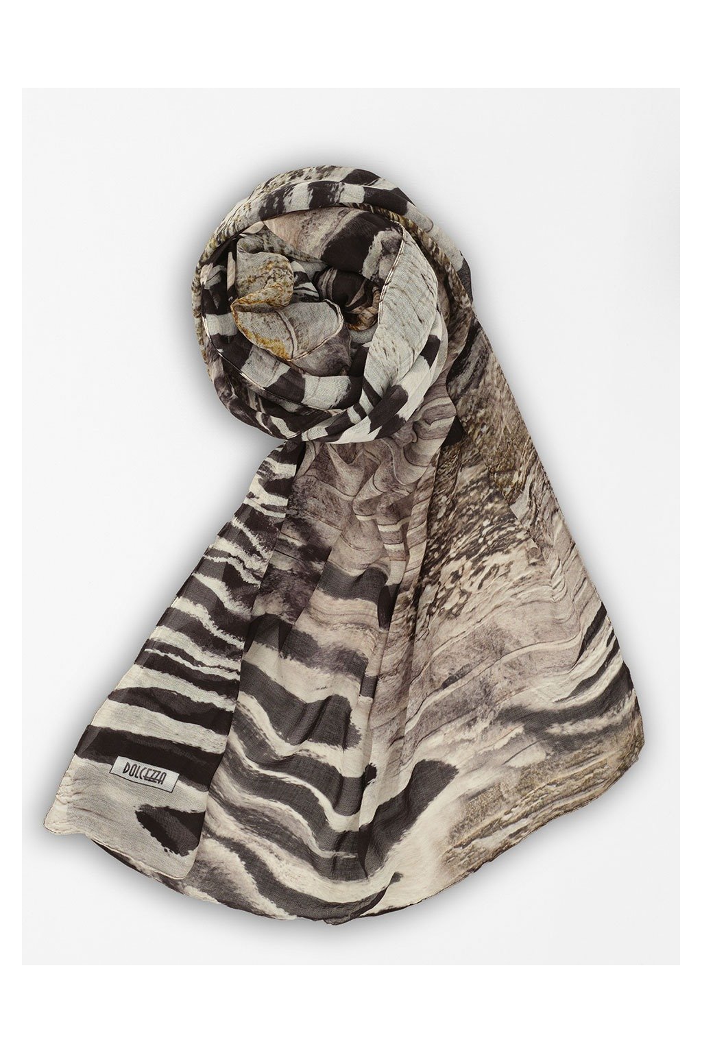 Táto elegantná dámska šatka značky Dolcezza zaujme svojim sofistikovaným vzorom v prírodných tónoch béžovej, šedej a čiernej, ktorý pripomína jemnú hru textúr a línií. Je vyrobený z ľahkého, príjemného materiálu, ktorý sa krásne nosí a dodá vášmu outfitu nádych originality aj elegancie. Vďaka svojej univerzálnej farebnosti sa ľahko kombinuje s akýmkoľvek oblečením – od ležérnych džínsov až po elegantné sako. Štýlový doplnok pre každú príležitosť, ktorý podčiarkne váš osobitý vkus.