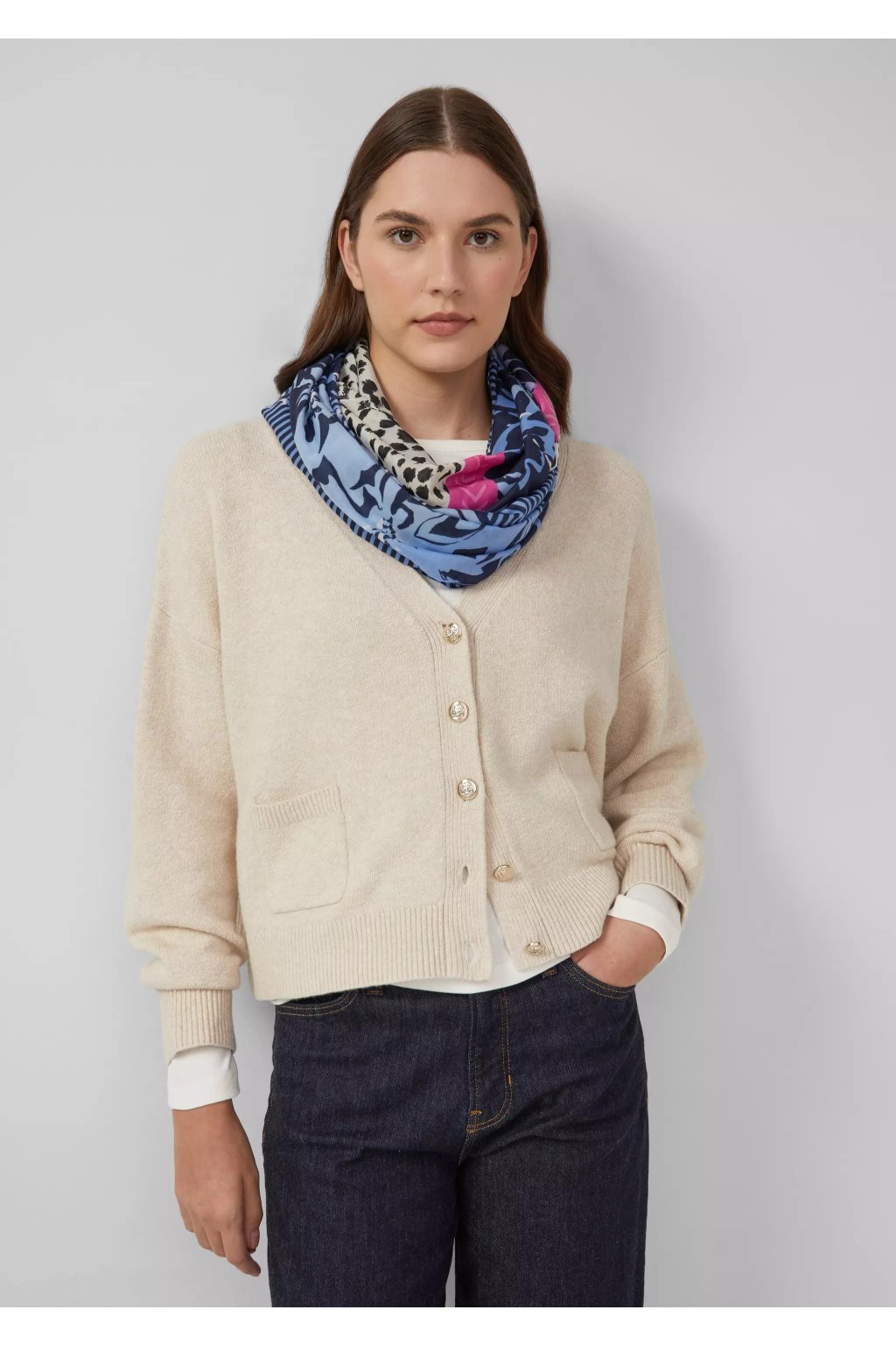 Módny slučkový šál s výraznou zvieracou potlačou a kvetinovými akcentmi bude vašim štýlovým spoločníkom pre každý deň. Vďaka mäkkému materiálu a módnemu pruhovanému designu je dokonalým doplnkom pre váš osobitý vzhľad.
