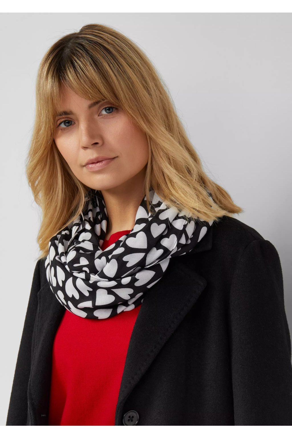 Štýlová dámska šatka s moderným vzorom srdiečok je perfektným doplnkom pre oživenie každodenného outfitu. Ľahký a príjemný materiál sa krásne prispôsobí a pohodlne sa nosí po celý deň. Nadčasová čierno-biela kombinácia sa ľahko kombinuje s kabátom, bundou aj svetrom. Šatku môžete nosiť klasicky okolo krku alebo voľne prehodenú cez ramená. Ideálna voľba pre ženy, ktoré chcú dodať svojmu štýlu šmrnc a hravosť