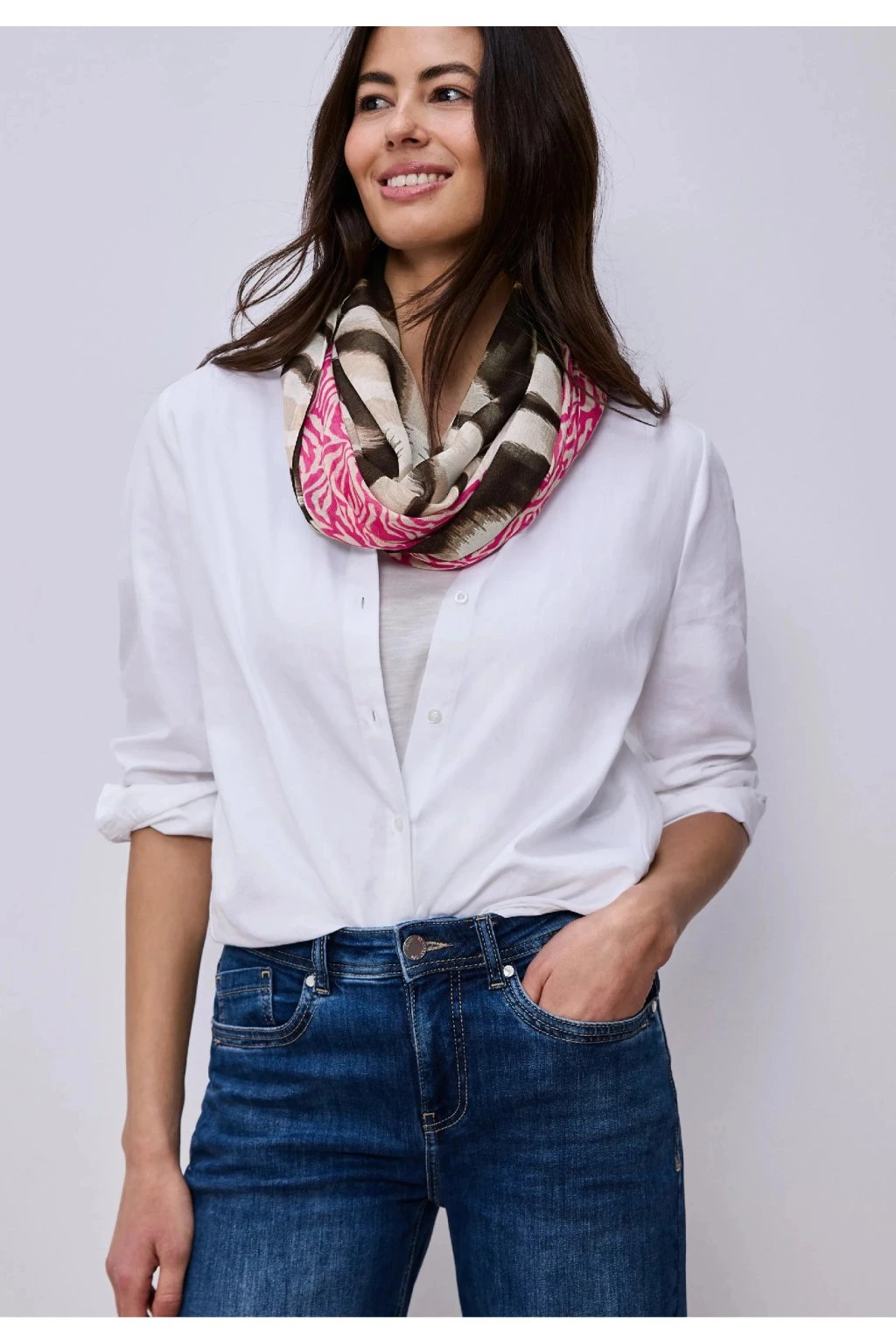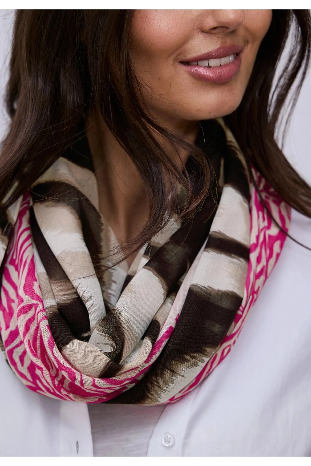 Štýlová dámska šatka s výrazným vzorom v modernej kombinácii ružovej, béžovej a hnedej krásne oživí každý outfit a dodá mu ženský šmrnc. Ľahký a príjemný materiál zaisťuje pohodlie pri nosení po celý deň a vďaka nadčasovému dizajnu sa ľahko kombinuje s košeľou, svetrom aj bundou. Ideálny doplnok pre jarný aj jesenný styling aj pre chvíle, kedy chcete svoj look rýchlo a elegantne doladiť.
