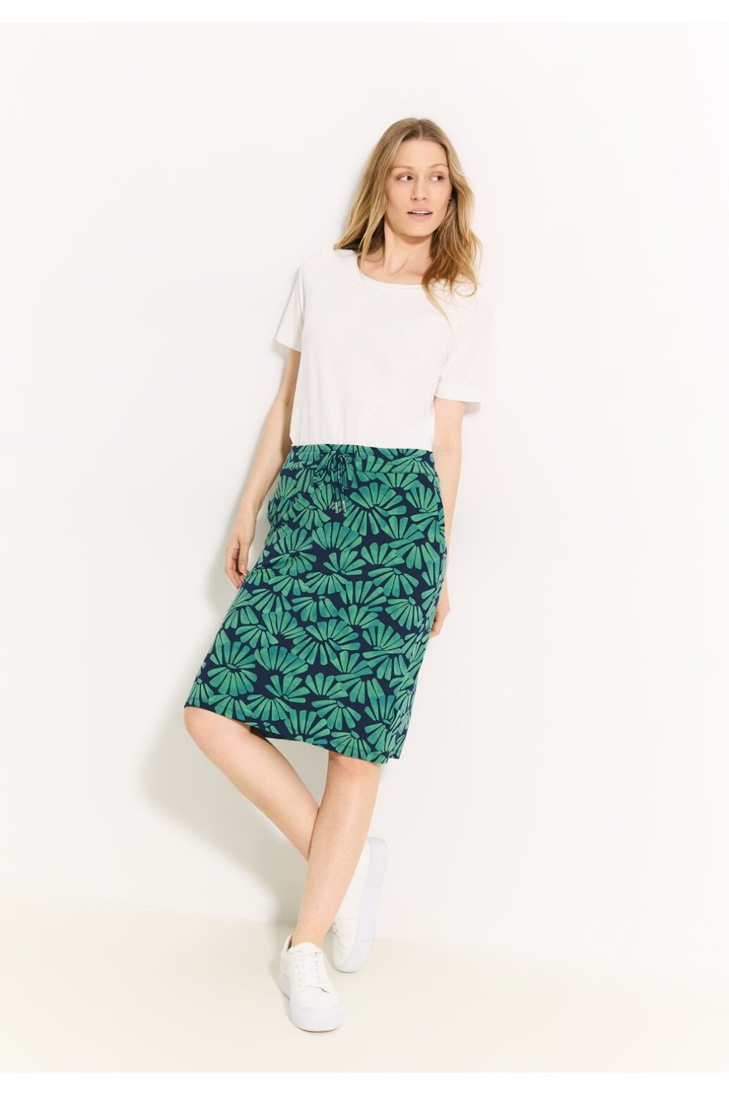 Dámska midi sukňa s potlačou od CECIL je džersejová sukňa s moderným shell vzorom. Má pohodlný elastický pás a sťahovaciu šnúrku na prispôsobenie. Praktické vrecká ponúkajú ďalšie pohodlie a funkčnosť.