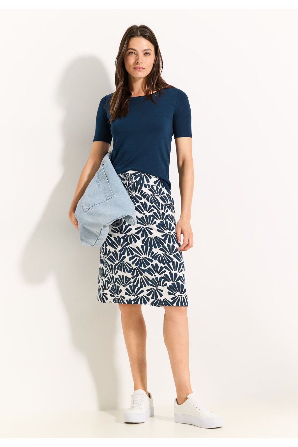 Dámska midi sukňa s potlačou od CECIL je džersejová sukňa s moderným shell vzorom. Má pohodlný elastický pás a sťahovaciu šnúrku na prispôsobenie. Praktické vrecká ponúkajú ďalšie pohodlie a funkčnosť.