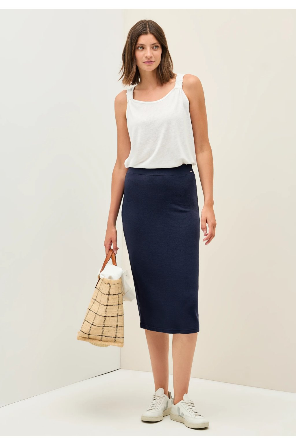 Táto midi sukňa od CECIL zaujme svojim módnym pleteným vzhľadom a rázporkom na zadnej strane. Elastický pás zaisťuje pohodlné nosenie.