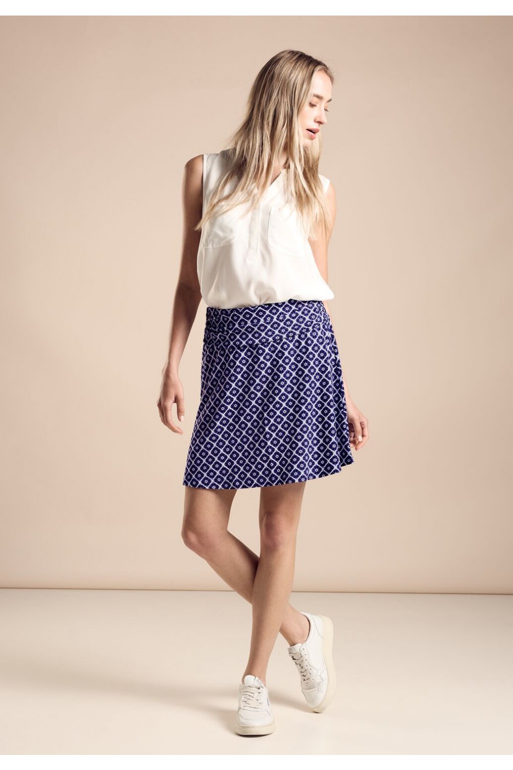 Dámska letná sukňa v štýle Lou od Street One má atraktívnu potlač. Mini zaujme širokým elastickým pásom, ktorý ponúka maximálne pohodlie. Vyrobené z príjemného kvalitného džerseja, je ideálny pre teplé dni.