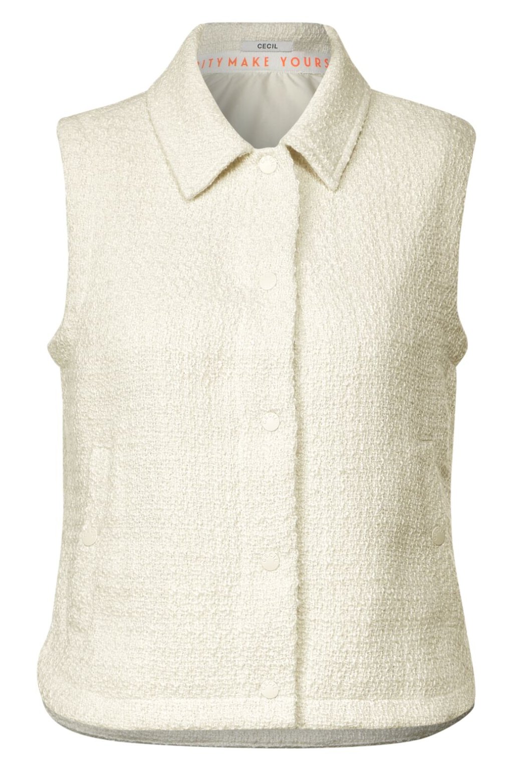 Vesta Bouclé od CECIL je štýlový a všestranný kus oblečenia pre ženy. So svojimi vreckami, golierom a gombíkovou légou je nielen praktická, ale aj módna. Príjemná vnútorná podšívka zaisťuje vysoký komfort, zatiaľ čo kvalitná žakárová kvalita dodáva veste elegantný vzhľad.