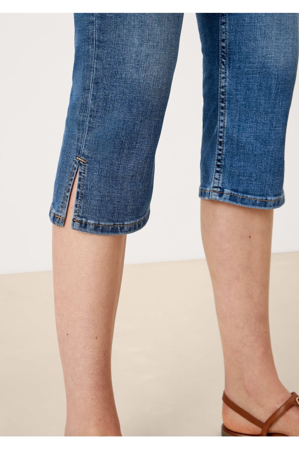 Tento dámske capri od značky s.Oliver sú vyrobené z kvalitného materiálu, ktorý zaisťuje pohodlie a skvelú pohyblivosť. So zložením materiálu 85% bavlnou, 14% polyesterom a 1% elastanom sú tieto capri ideálnou voľbou na každodenné nosenie.