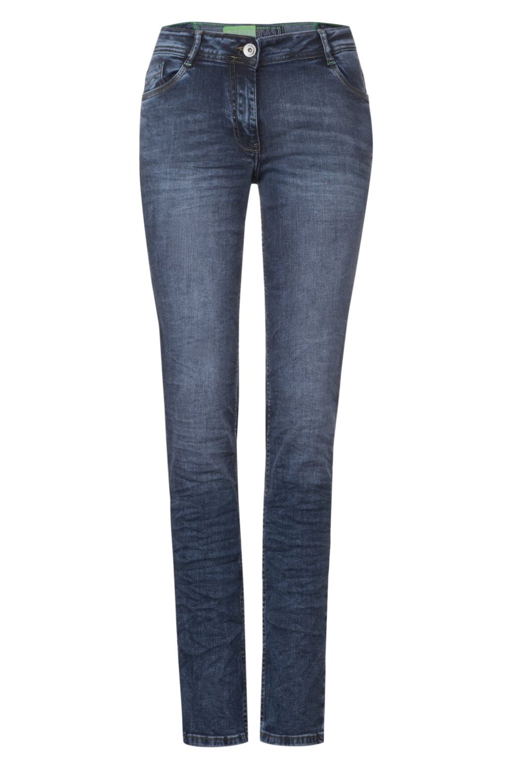 Dámske džínsy v štýle Scarlett značky CECIL majú pohodlný ležérny strih so stredným pásom a štíhlymi nohavicami. Tento všestranný denim je možné nosiť vyhrnutý v módnom boyfriend vzhľade, takže je ideálnym spoločníkom pre váš každodenný život. Či už ste na cestách alebo si užívate svoj voľný čas, tieto stredne modré džínsy dodajú vášmu vzhľadu ležérny nádych.