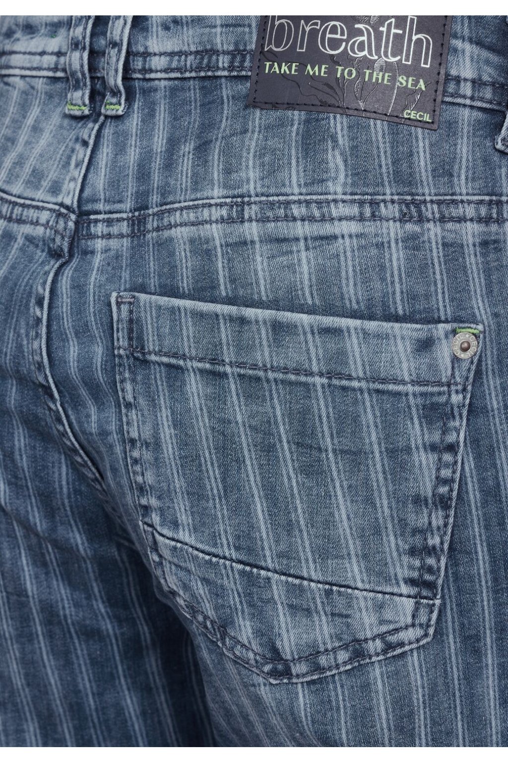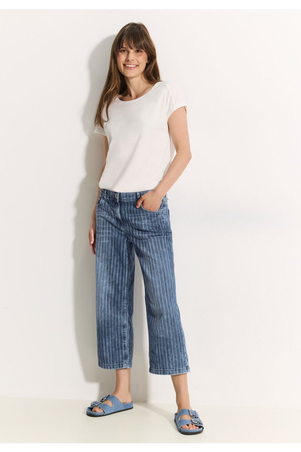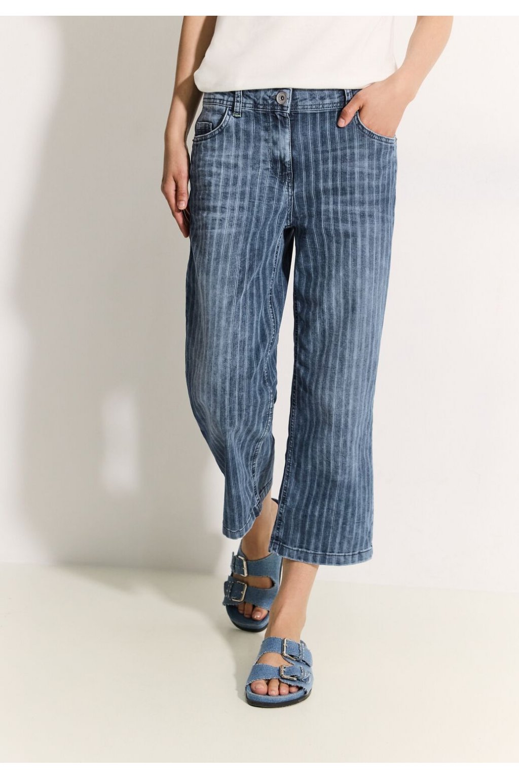 3/4 džínsy v štýle Neele od CECIL pre ženy sú módnym vrcholom s pruhmi s laserovou potlačou a voľným strihom. S vysokým pásom a širokými nohavicami ponúka modernú siluetu a pohodlný strih. Vyrobené z príjemnej bavlnenej zmesi, je ideálny pre trendy vzhľad.