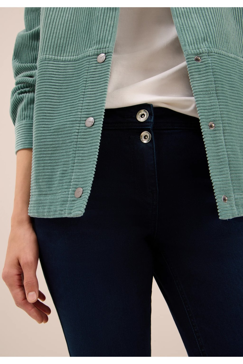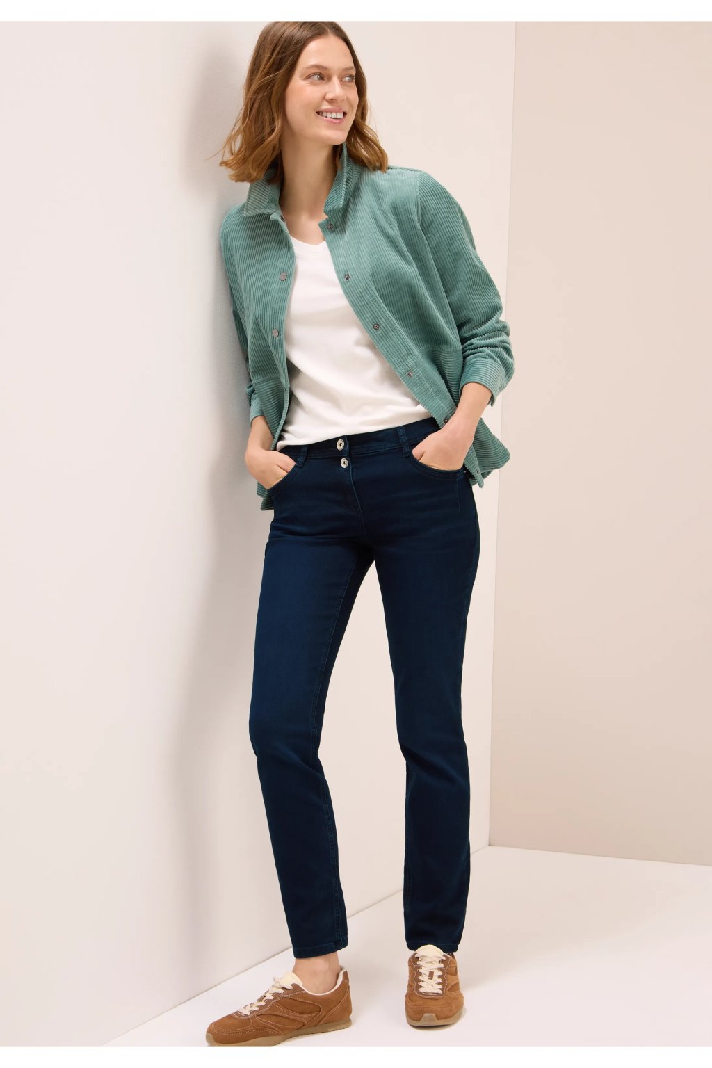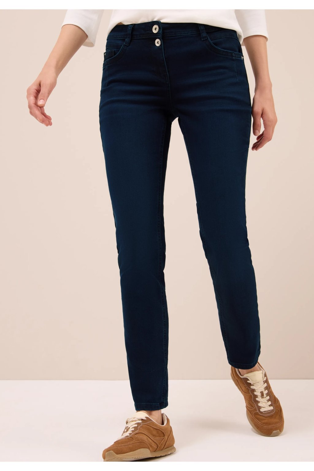Dámske džínsy CECIL'S Scarlett sa vyznačujú stredne vysokým pásom a štíhlymi nohavicami pre moderný vzhľad. Čierno-modré pranie sa hodí k všestranným kombináciám, zatiaľ čo strečová bavlnená zmes zaisťuje pohodlné nosenie. Klasický 5-vreckový strih dopĺňa dizajn – ideálny pre ležérne každodenné outfity.