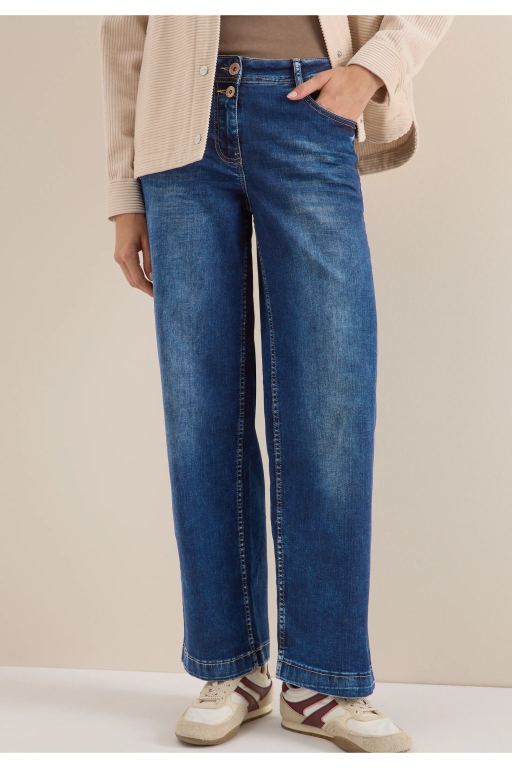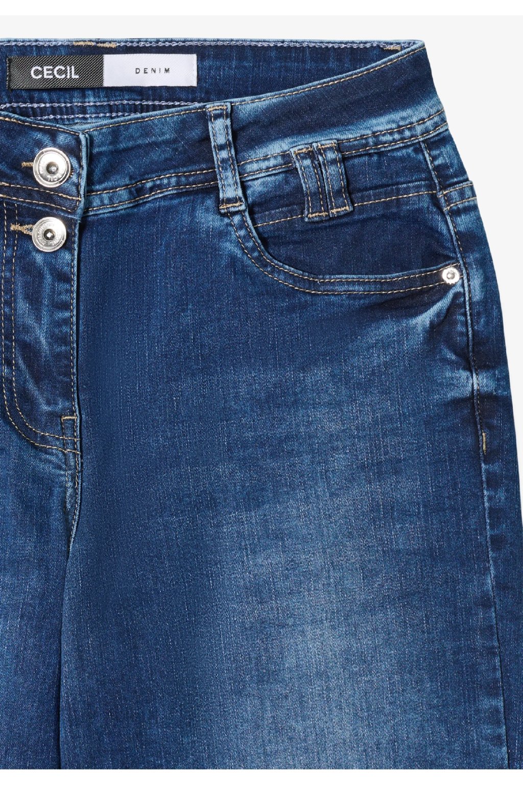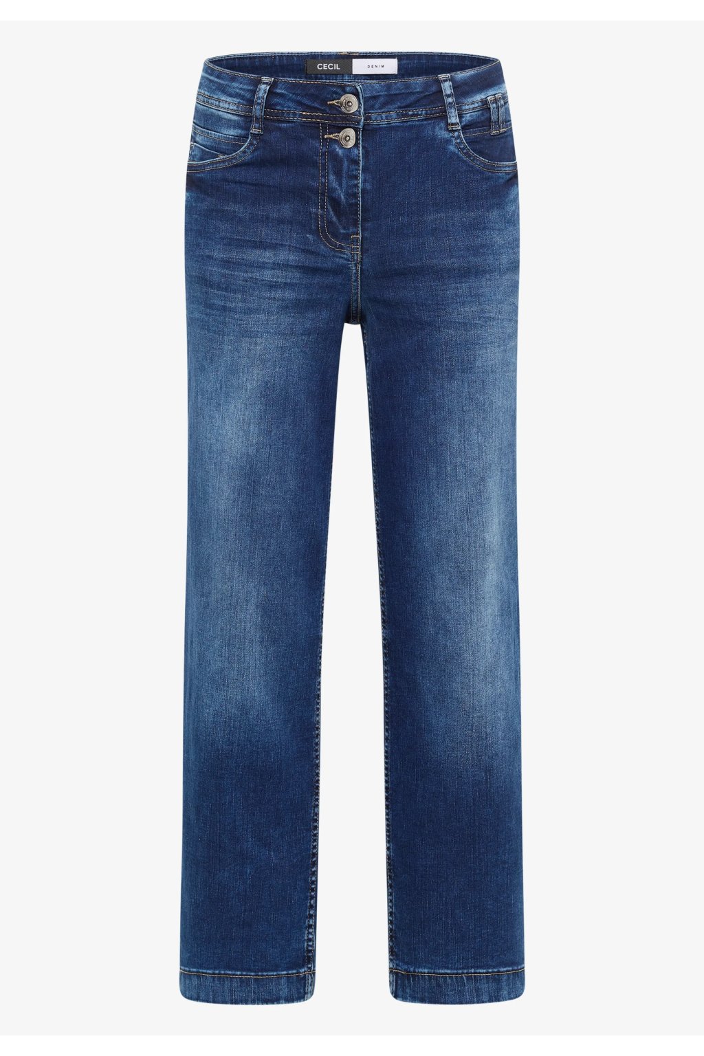 Dámske džínsy CECIL'S Neele so širokými nohavicami sa vyznačujú voľným strihom, vysokým pásom a širokými nohavicami. Modré pranie a 5-vreckový strih vytvárajú klasický džínsový vzhľad, zatiaľ čo strečová bavlnená zmes zaisťuje pohodlie. Ideálne pre moderné ležérne outfity.