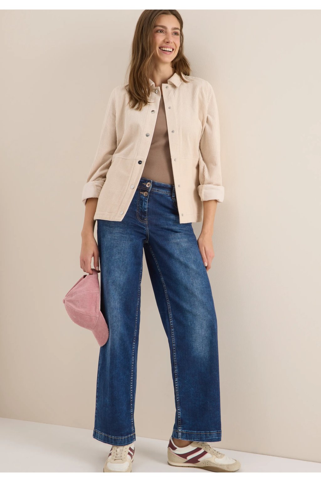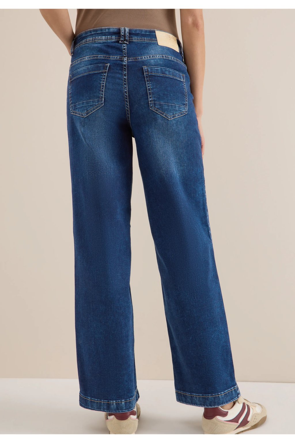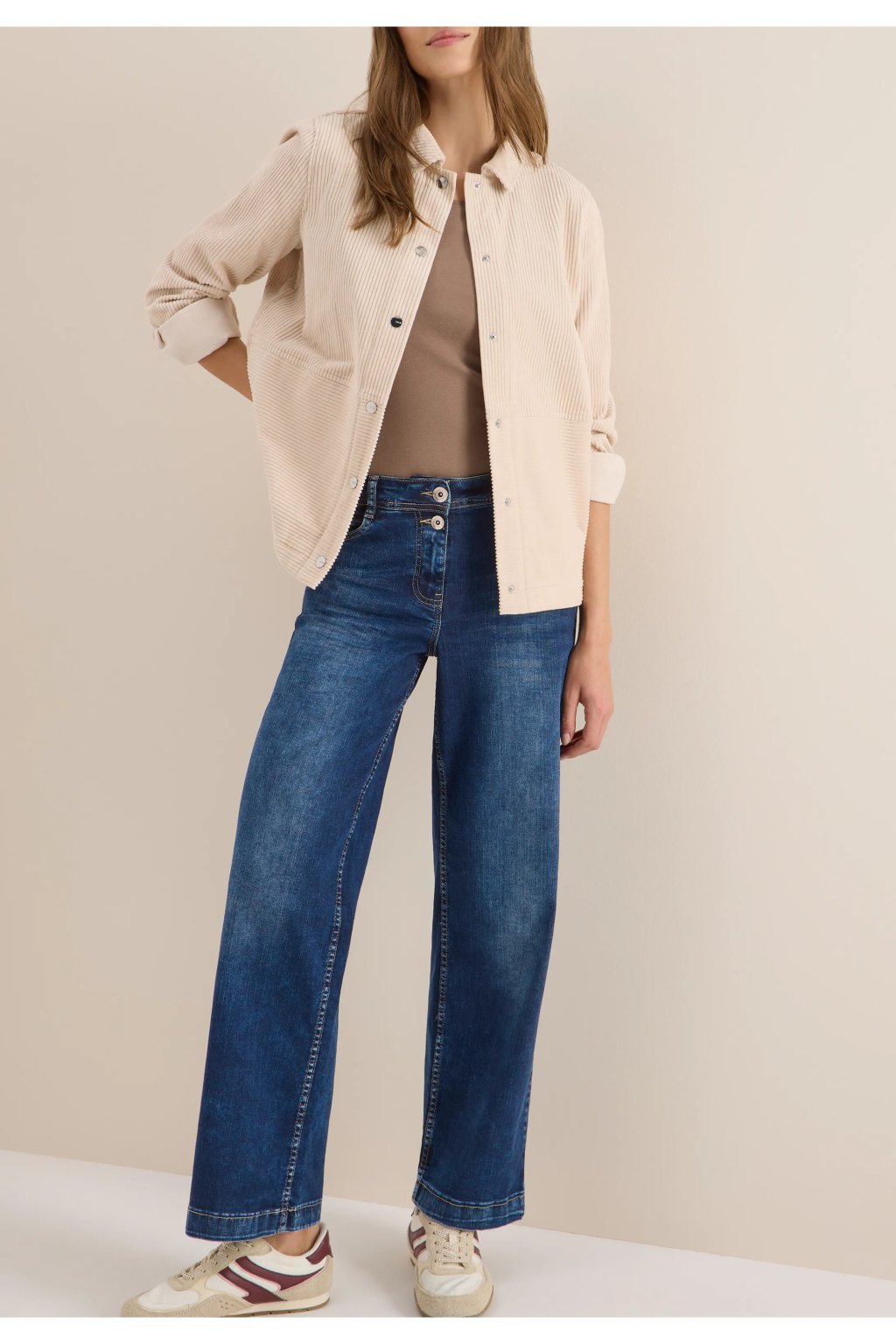 Dámske džínsy CECIL'S Neele so širokými nohavicami sa vyznačujú voľným strihom, vysokým pásom a širokými nohavicami. Modré pranie a 5-vreckový strih vytvárajú klasický džínsový vzhľad, zatiaľ čo strečová bavlnená zmes zaisťuje pohodlie. Ideálne pre moderné ležérne outfity.